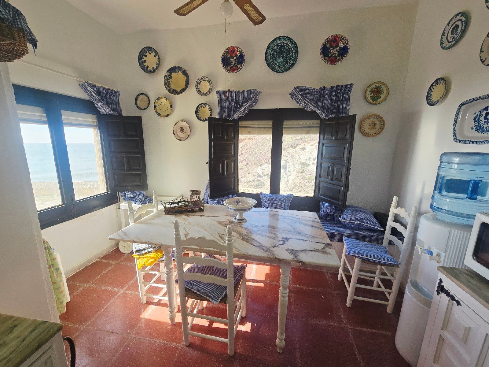 La vivienda, de 195 m² construidos, destaca por su arquitectura mediterránea, diseñada para integrarse perfectamente en el entorno. Dispone de un amplio salón lleno de luz natural, cocina independiente con vistas directas al mar, 4 dormitorios y dos terrazas, una cubierta y otra descubierta, desde las que se pueden contemplar el mar, el Faro de Cabo de Gata y espectaculares atardeceres.