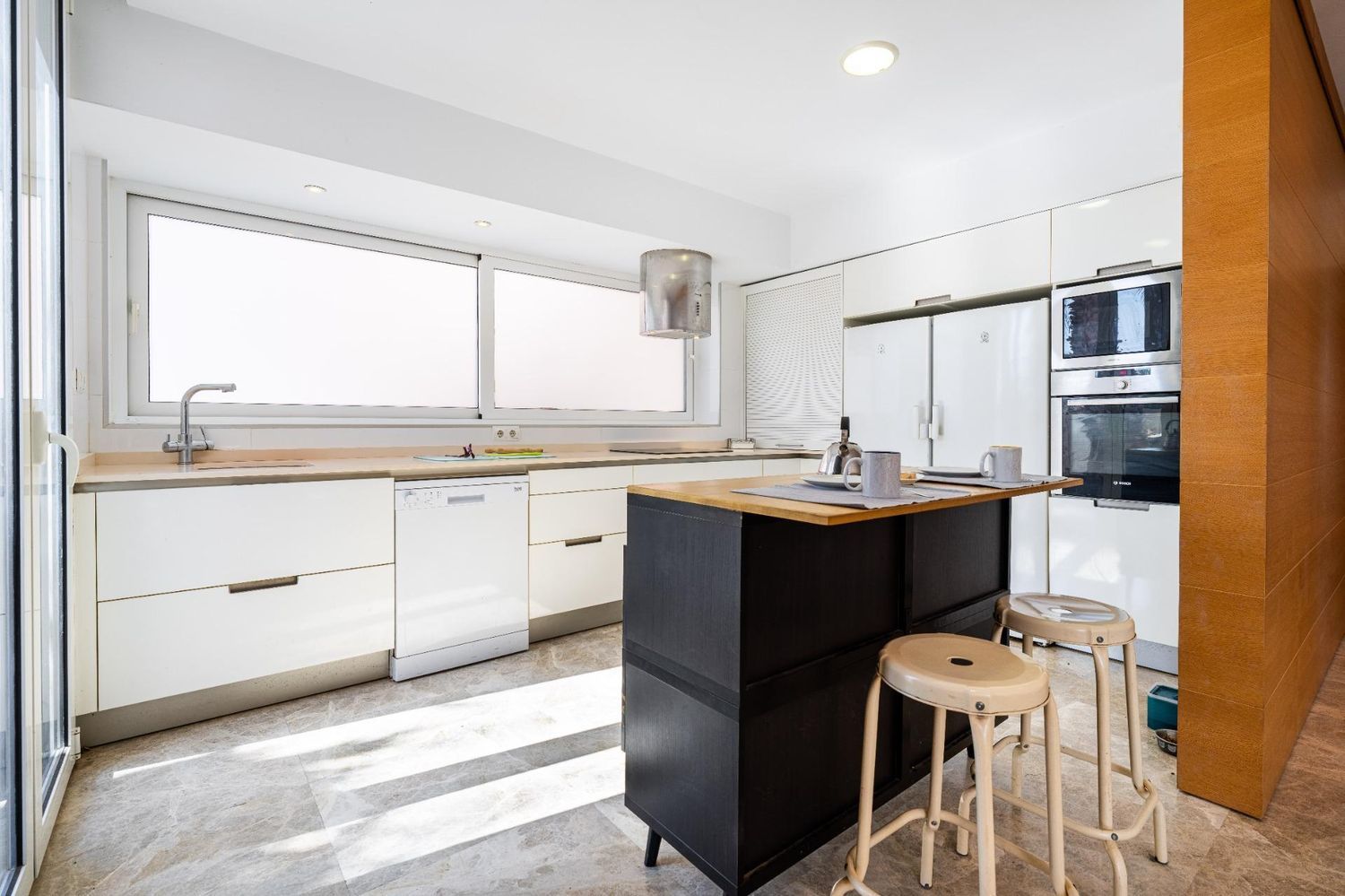 La cocina, equipada con mobiliario de alta calidad, incorpora una elegante pared corredera de madera que permite adaptarla al momento: abierta para compartir y disfrutar en compañía, o cerrada para crear un ambiente más íntimo y sereno. Un equilibrio ideal entre diseño contemporáneo, funcionalidad y calidez.