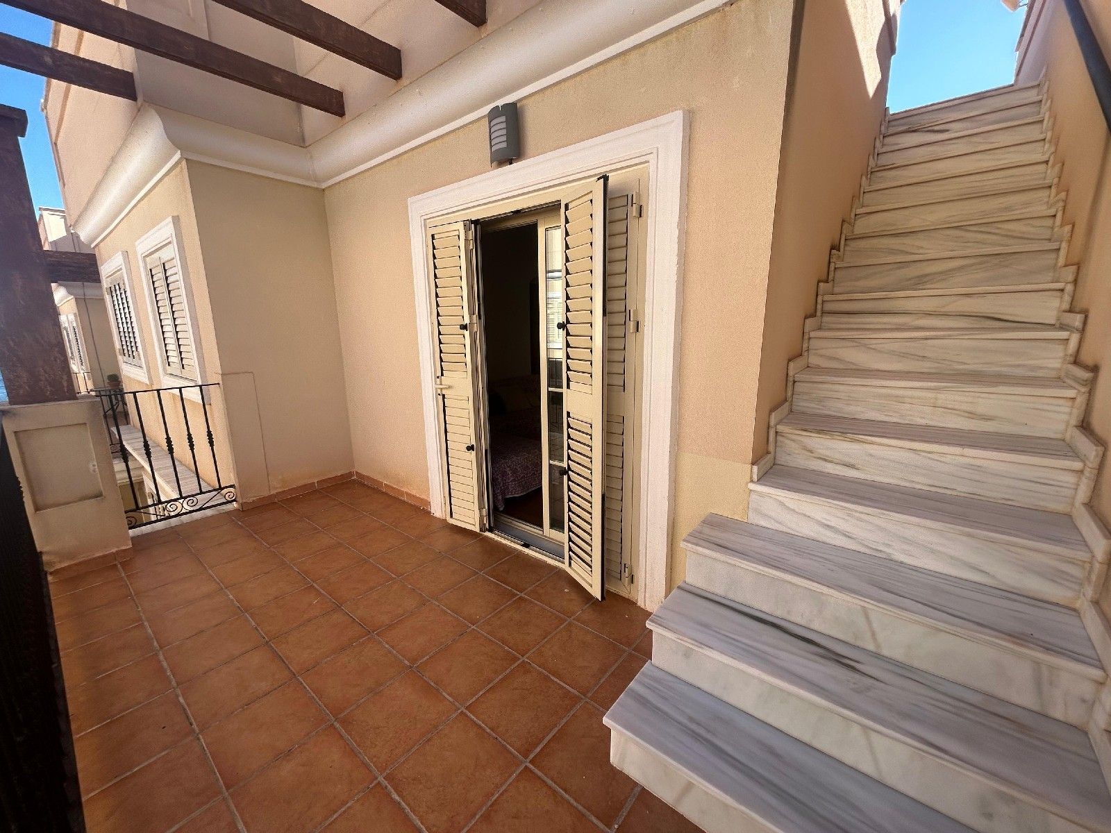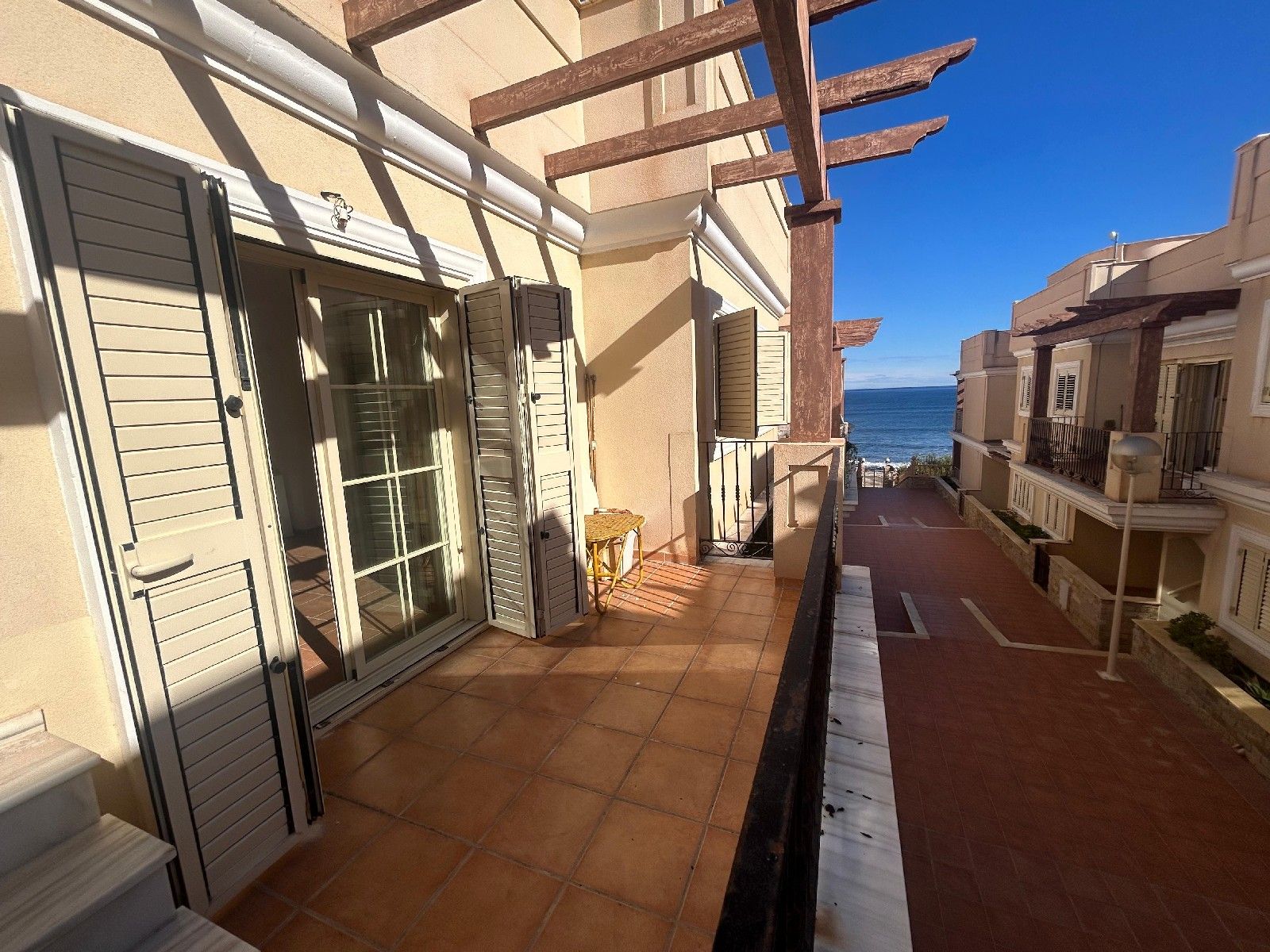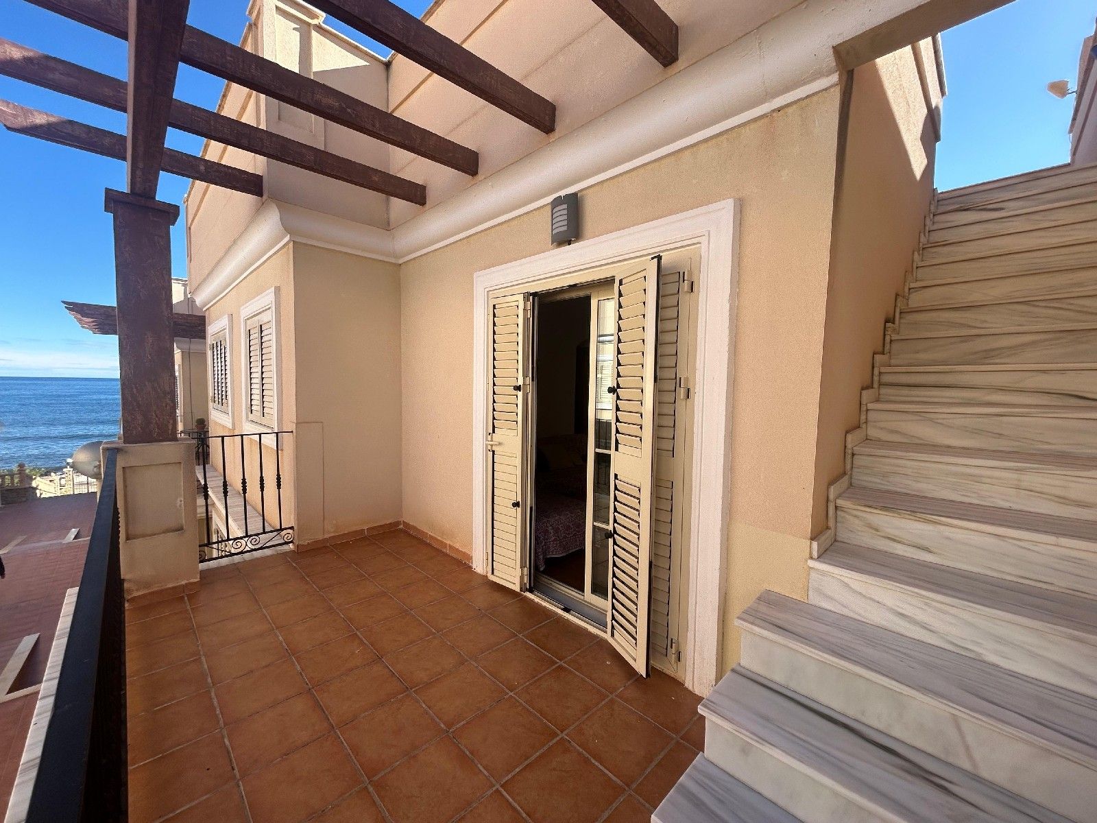 Uno de sus mayores atractivos es su espectacular terraza con acceso directo a la playa, perfecta para desayunos al aire libre o veladas junto al mar. Desde aquí se accede a un solárium privado, ideal para tomar el sol, disfrutar de las vistas o relajarse al atardecer.