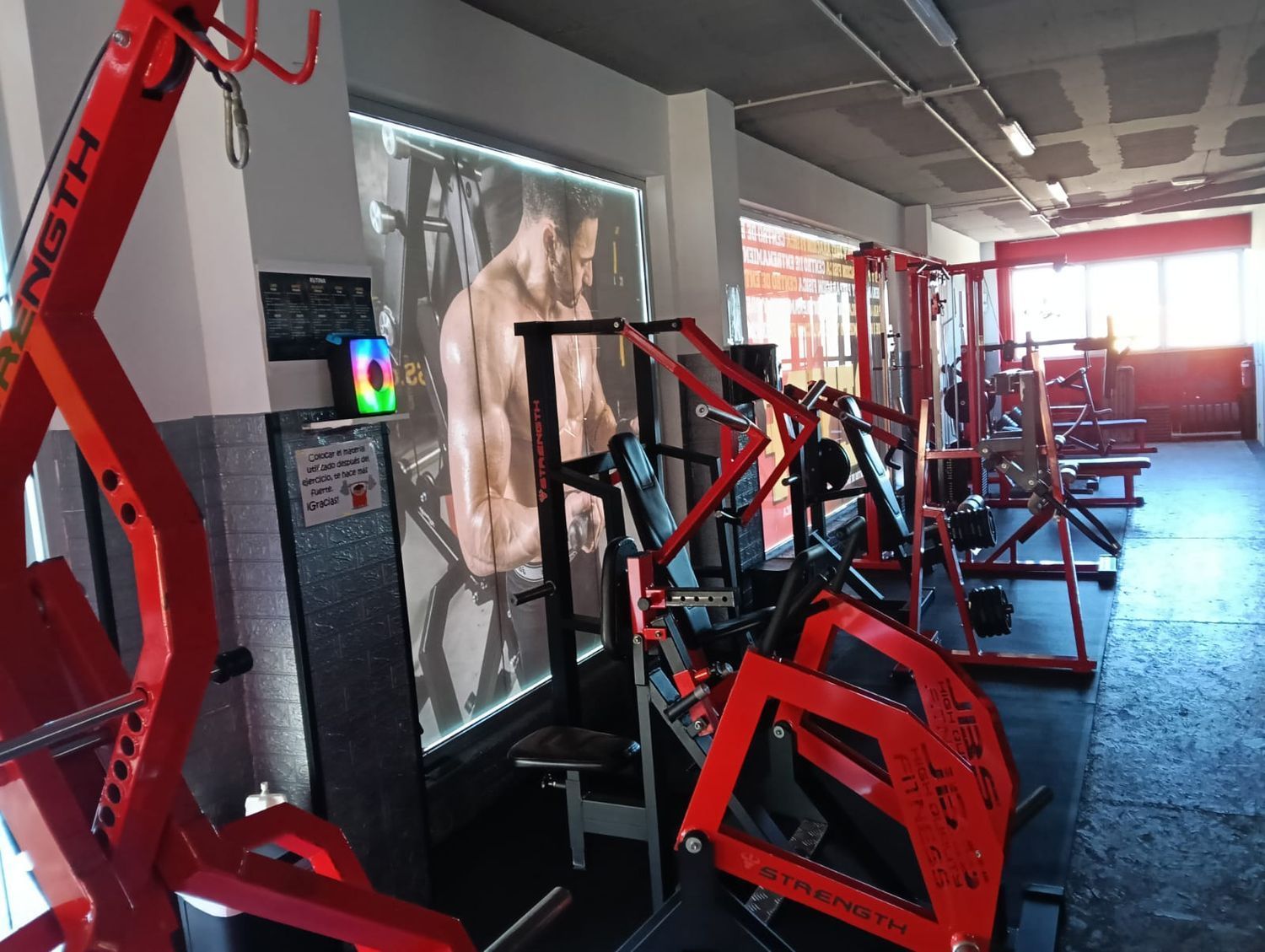 El gimnasio se encuentra en un edificio construido en 2002, en estado de segunda mano pero muy bien conservado, y está equipado con aire acondicionado, garantizando confort durante todo el año tanto para usuarios como para el equipo de trabajo. También dispone de entrada auxiliar, facilitando el acceso para personal, mantenimiento o carga de material.