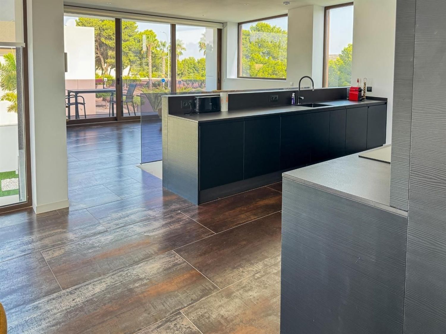 Una de las características más destacadas de esta vivienda es su distribución invertida, que sitúa la zona principal de estar en la planta superior. Este diseño permite aprovechar al máximo la luz natural y las vistas abiertas, creando un ambiente elevado, elegante y acogedor. En este nivel encontramos una cocina moderna totalmente equipada, un comedor amplio y un gran salón con ventanales panorámicos que se abre a una terraza espaciosa, perfecta para relajarse, disfrutar del clima o recibir invitados en un entorno sofisticado.