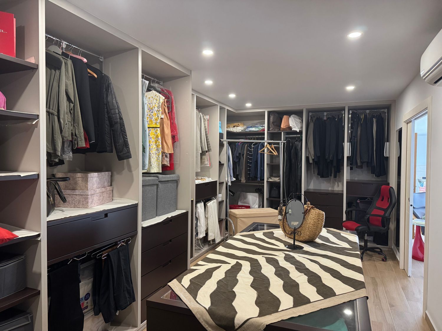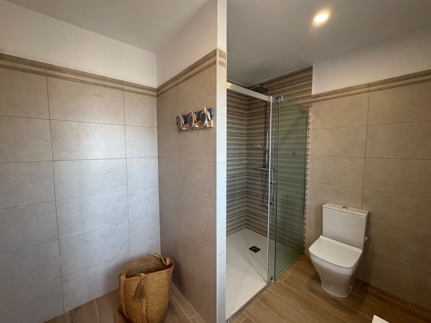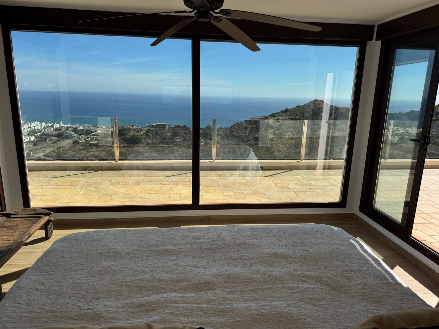 La planta superior está dedicada íntegramente al dormitorio principal, un refugio exclusivo donde el lujo y el bienestar se combinan para crear un ambiente de absoluta tranquilidad. La estancia dispone de un amplio vestidor, una bañera de hidromasaje, sauna, ducha a ras de suelo y una terraza privada con vistas frontales al mar, proporcionando un espacio íntimo de relajación difícil de igualar.