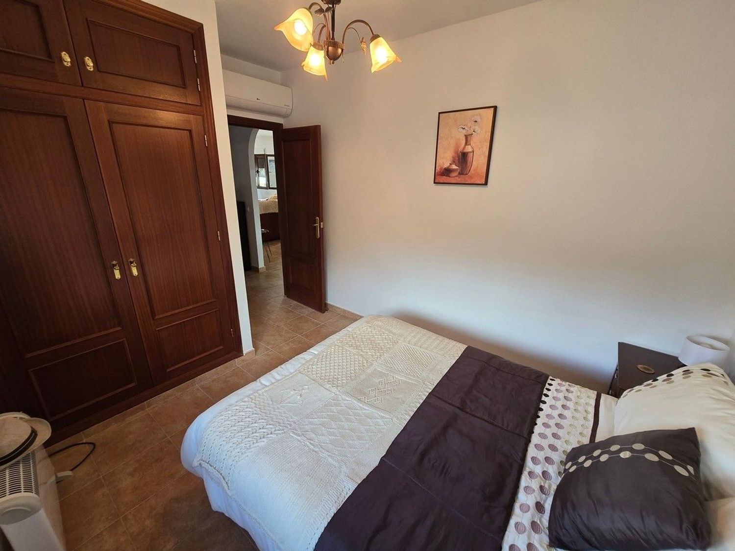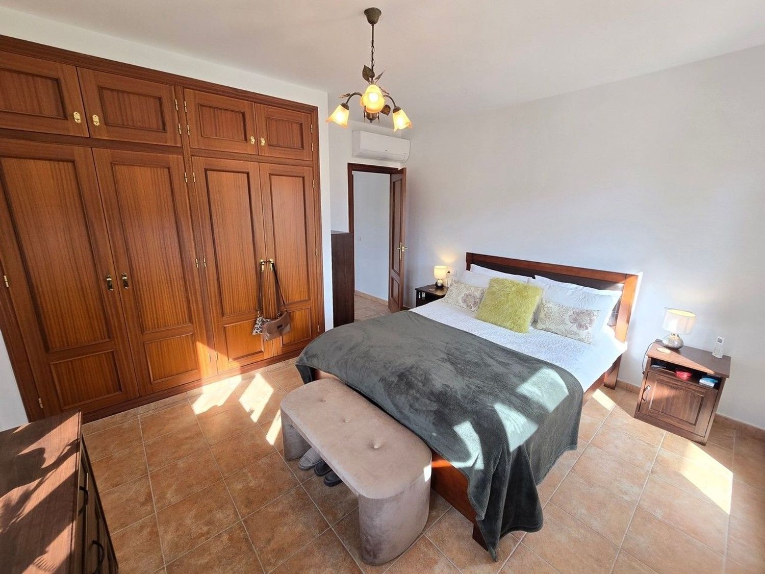 Un pasillo conduce a dos amplios dormitorios dobles situados en la planta principal. Ambos disponen de armarios empotrados y aire acondicionado, ofreciendo espacios cómodos y tranquilos para el descanso. En esta planta se encuentra también un elegante baño familiar totalmente actualizado. Además, bajo la escalera se ha aprovechado inteligentemente el espacio disponible para habilitar armarios y zonas de almacenamiento adicionales.