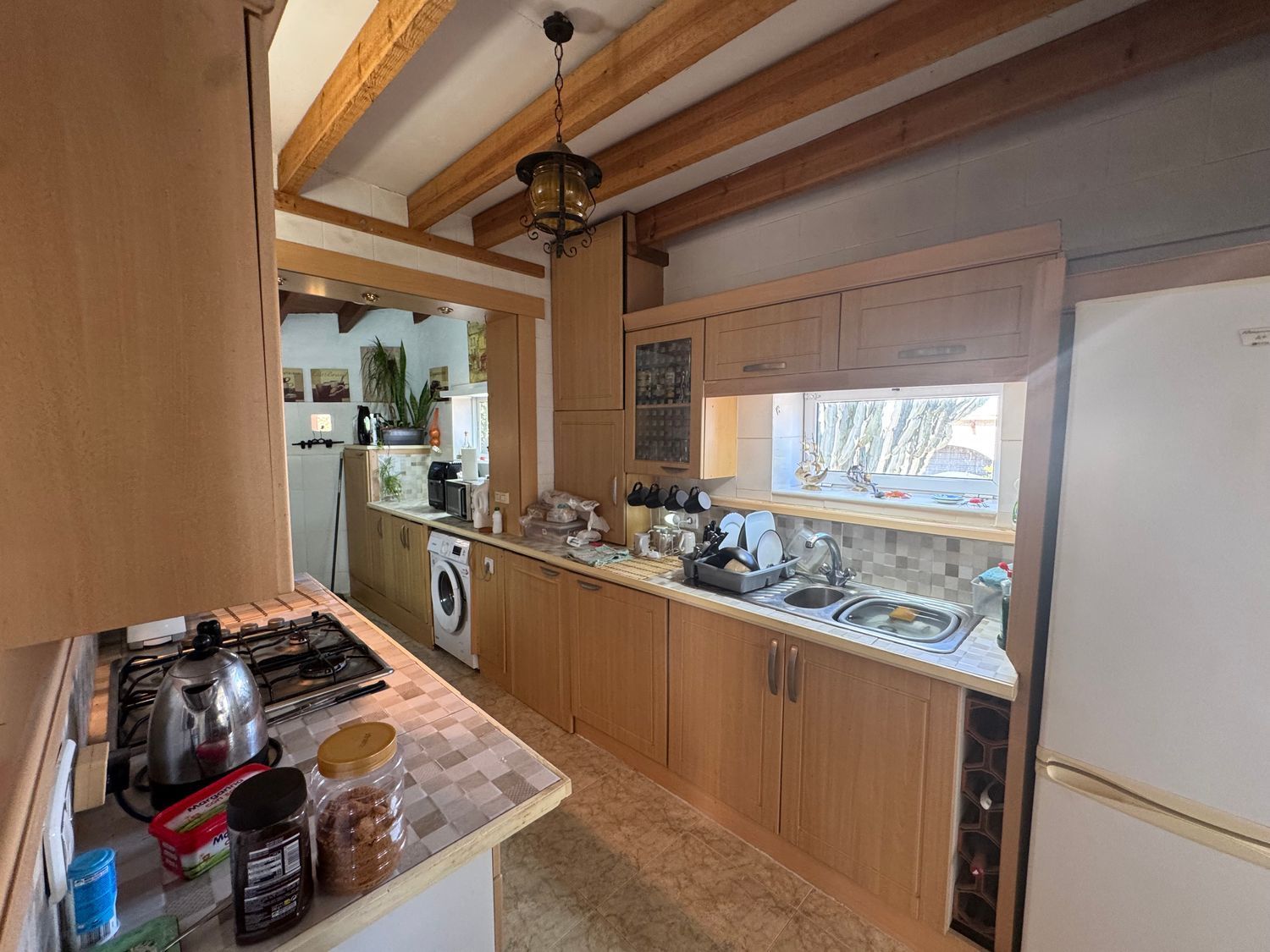 La cocina es de buen tamaño, funcional y con espacio suficiente para el uso diario. Junto a ella encontramos una zona destinada a comedor o estudio, un espacio versátil que puede adaptarse fácilmente a diferentes necesidades, ya sea como despacho, comedor independiente o incluso una sala de estar adicional.