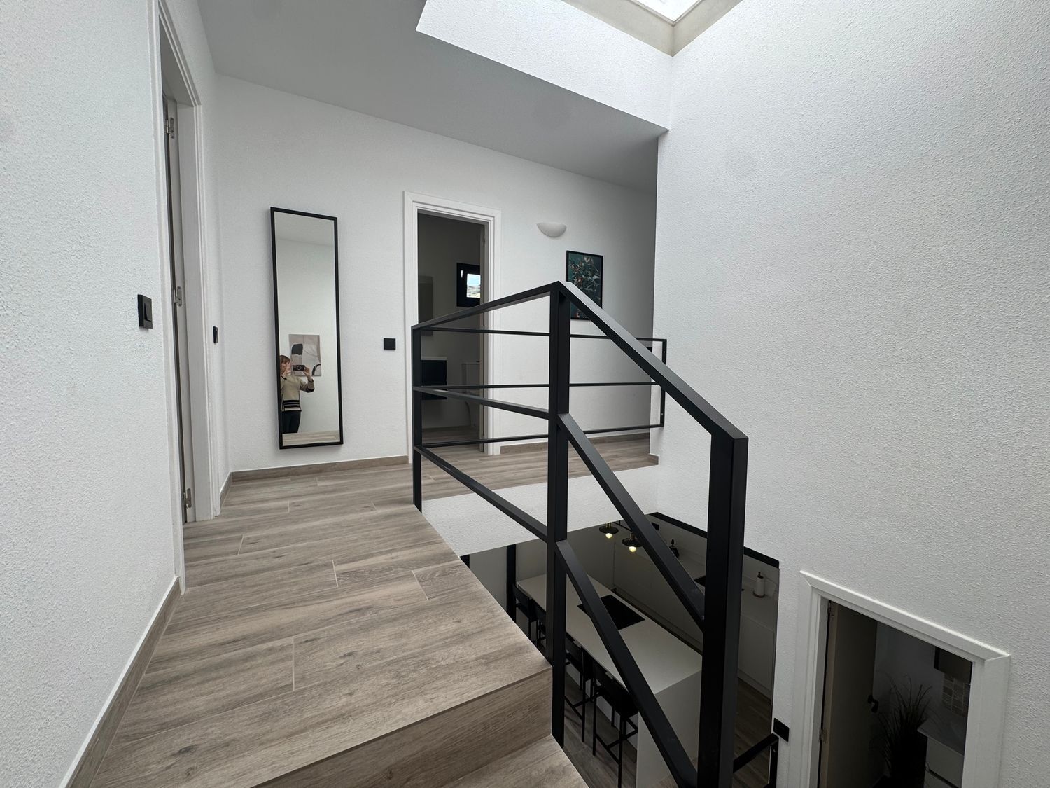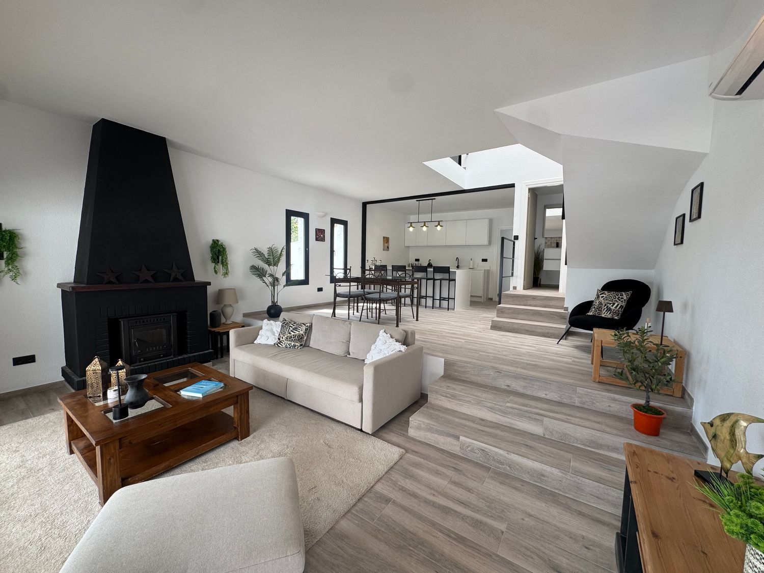 Uno de los elementos más llamativos de la casa es su espectacular salón de dos niveles. Este diseño arquitectónico aporta dinamismo y una sensación de amplitud única, creando diferentes ambientes dentro del mismo espacio. Es el lugar ideal tanto para disfrutar de momentos de relax como para recibir invitados en un entorno sofisticado y acogedor.