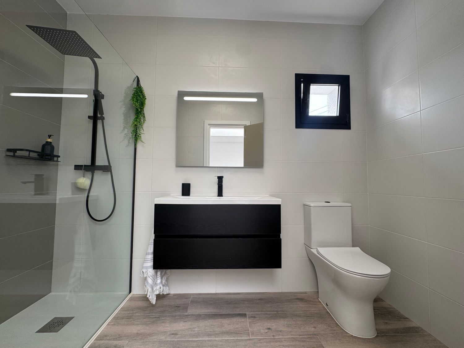 En el interior encontramos tres dormitorios amplios y luminosos, todos ellos equipados con armarios empotrados que aportan funcionalidad y optimización del espacio. La vivienda dispone además de dos baños completos con acabados modernos y elegantes, diseñados con materiales de calidad que aportan estilo y confort.