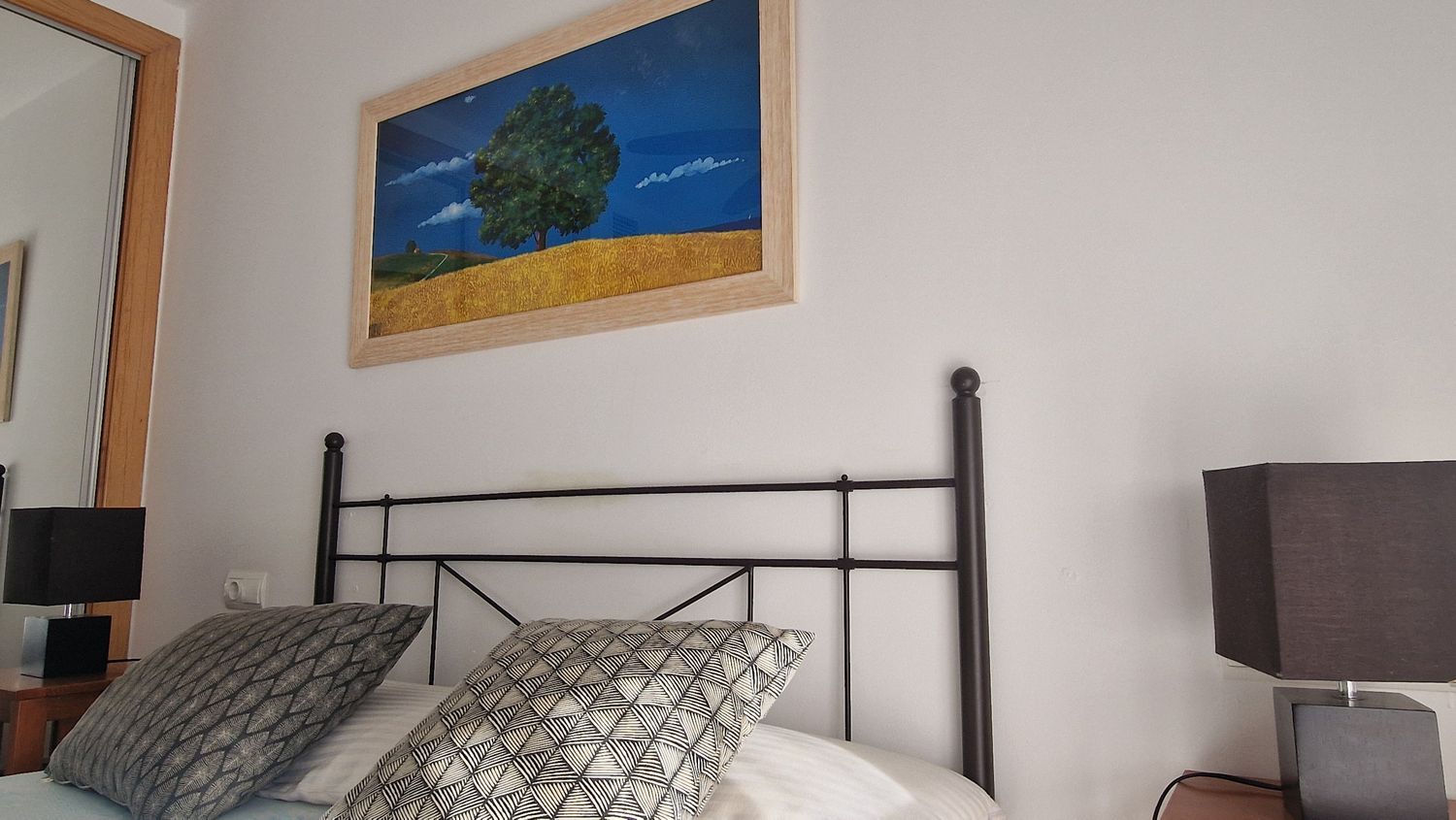 El ático cuenta con 68 m² construidos, distribuidos de forma funcional y cómoda. Dispone de dos dormitorios dobles, ambos con armarios empotrados, y dos baños completos, ideales tanto para uso familiar como para alojar invitados con total comodidad. El salón es luminoso y acogedor, con acceso directo a una terraza perfecta para desayunos al aire libre.