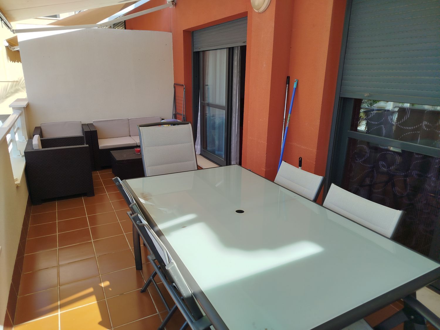 La vivienda se sitúa en la primera planta de un edificio con ascensor, ofreciendo comodidad y fácil acceso en todo momento. Al entrar, nos recibe un amplio y luminoso salón, perfectamente distribuido para crear zonas de descanso y comedor. Desde el salón se accede directamente a una gran terraza, ideal para disfrutar del clima mediterráneo durante todo el año. Esta terraza ofrece unas bonitas vistas a la piscina de la urbanización, lo que aporta una sensación de tranquilidad y bienestar.