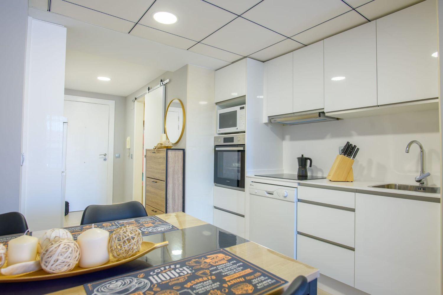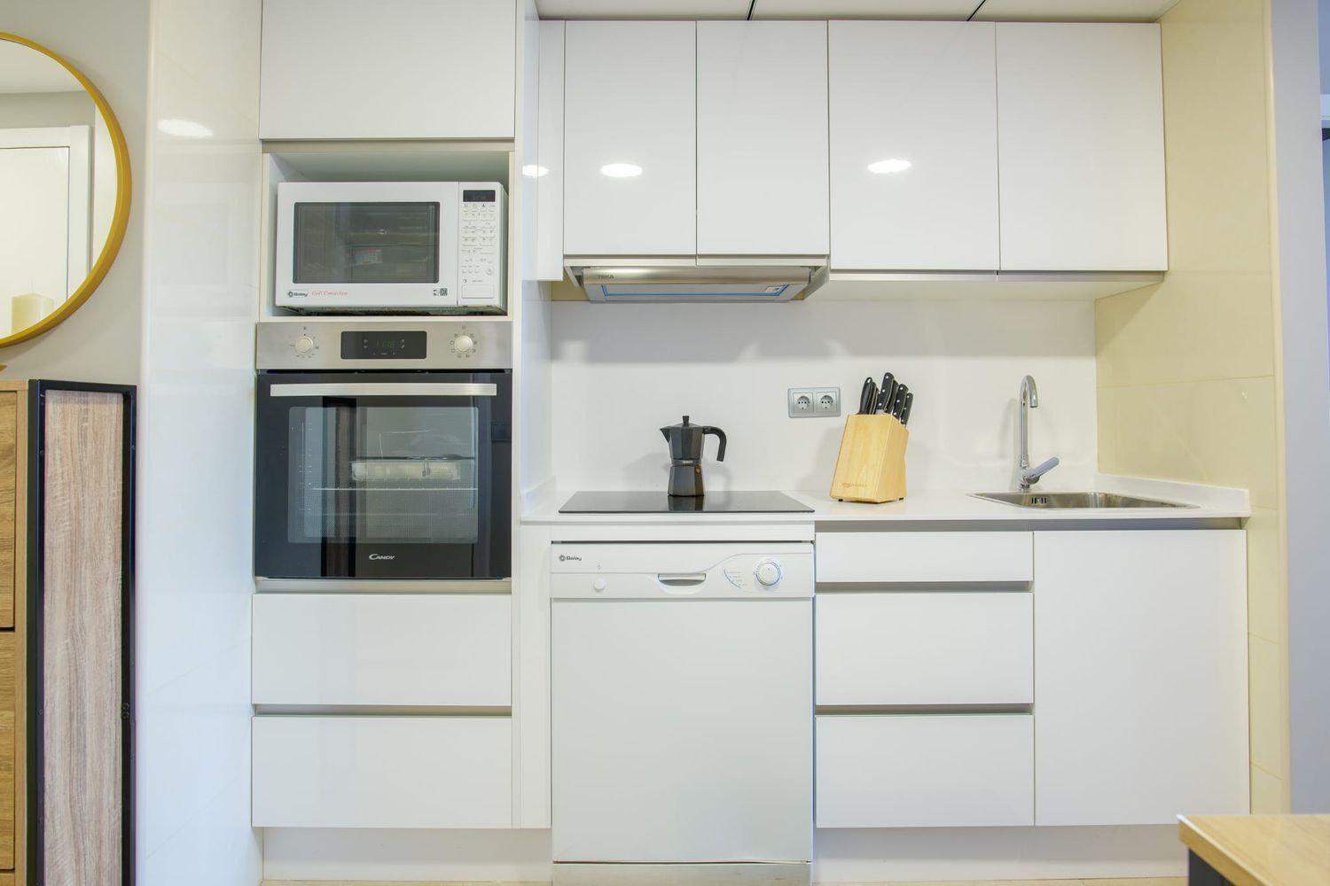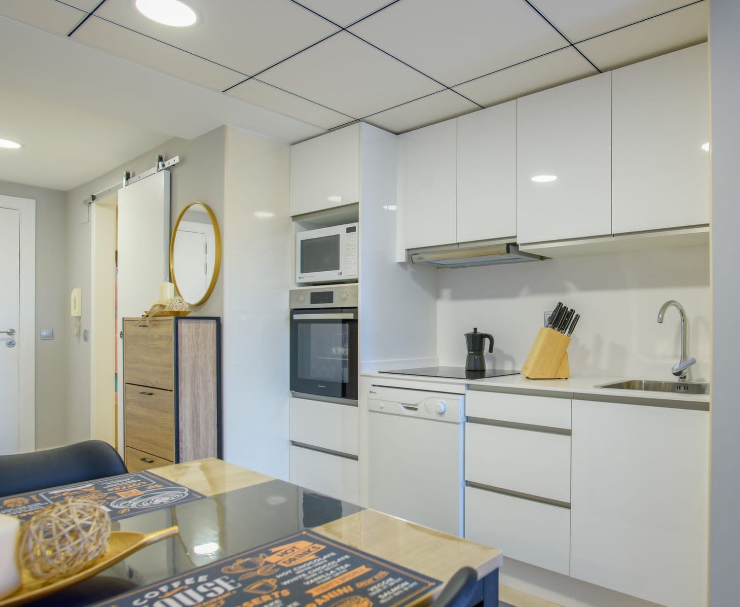 La cocina forma parte de un espacio integrado, funcional y moderno, renovado con materiales actuales y equipada con todo lo necesario para el día a día. El baño completo, también reformado, ofrece un estilo limpio, actual y muy práctico.