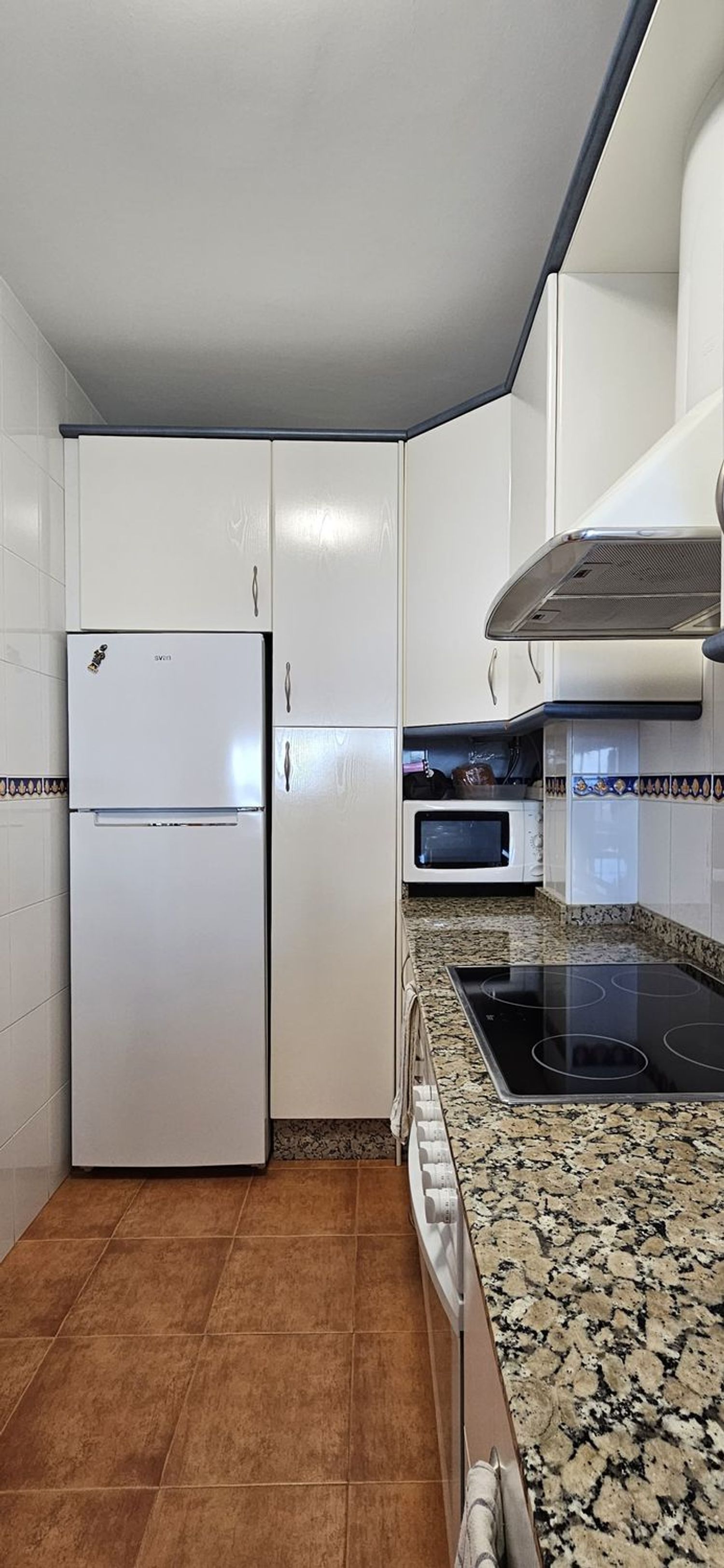 La cocina, de buen tamaño, está completamente equipada y cuenta con encimeras de granito y amplio espacio de almacenamiento, lo que la hace práctica tanto para el día a día como para estancias prolongadas.