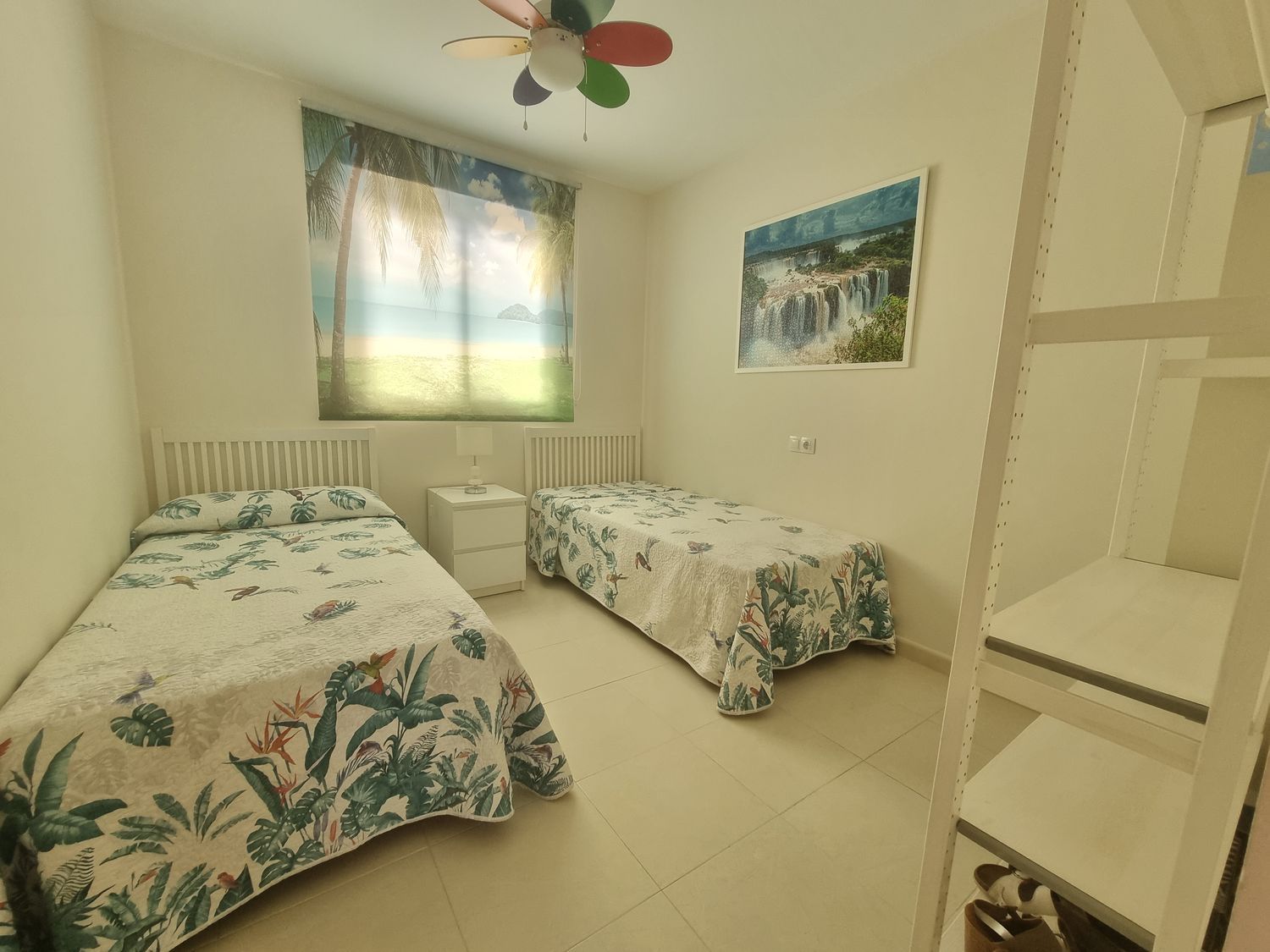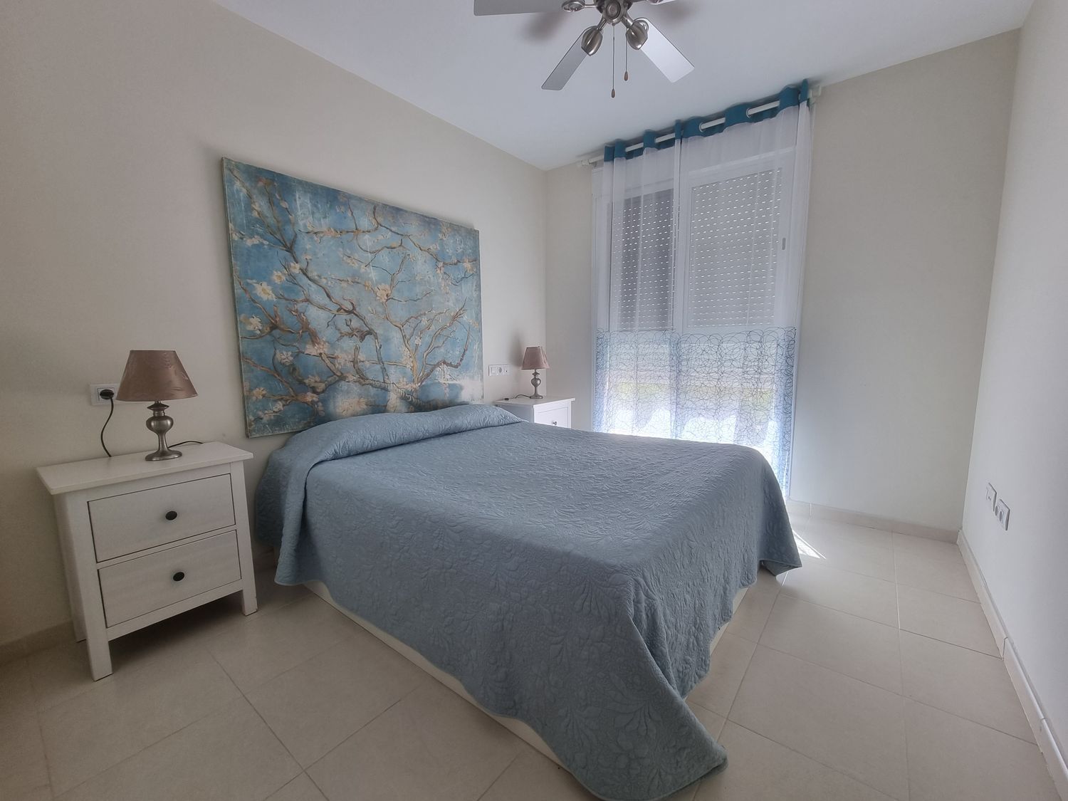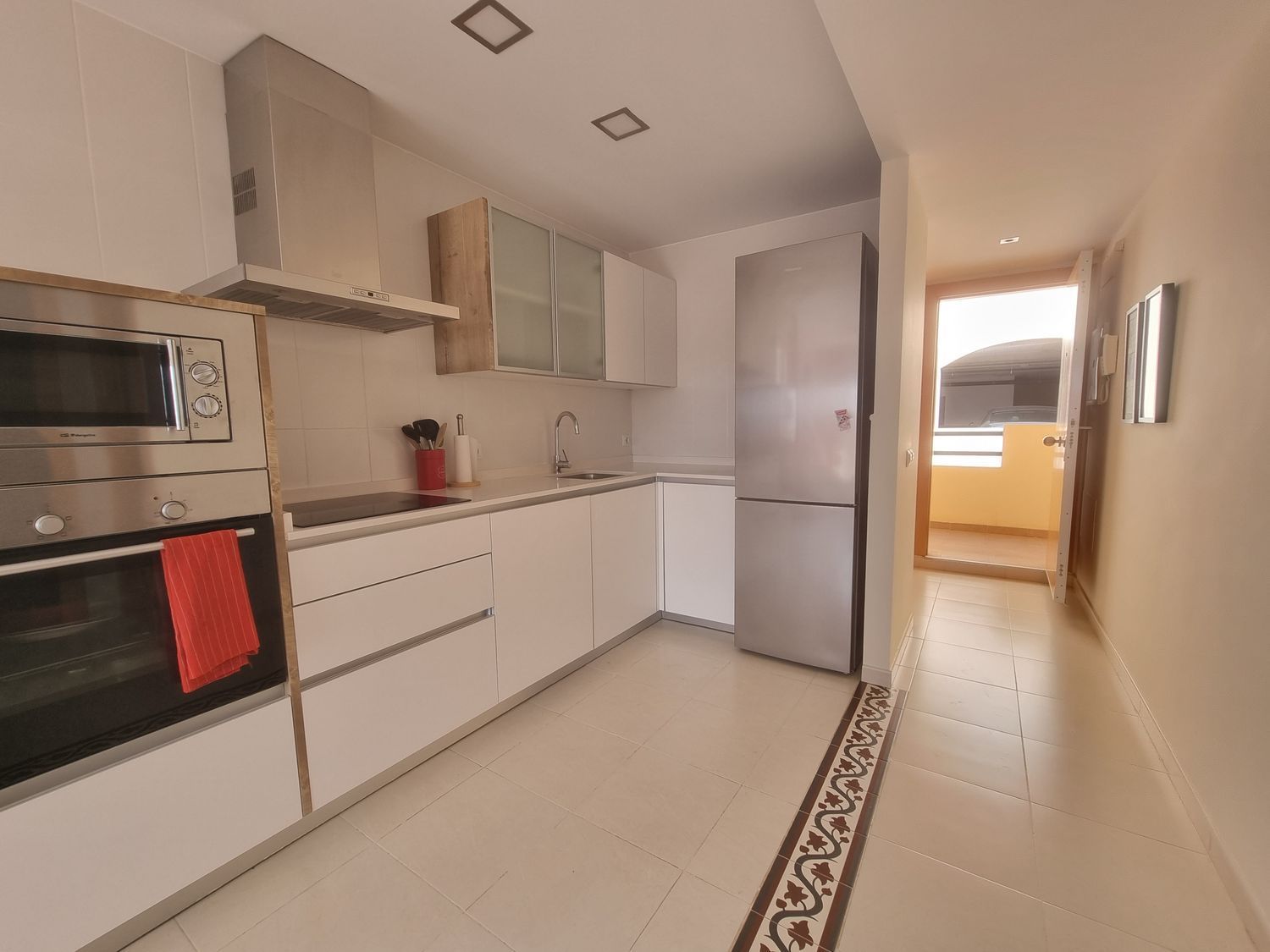La vivienda cuenta con dos dormitorios amplios y luminosos, ambos con armarios empotrados, así como dos baños completos. El salón-comedor, con acceso directo a la terraza, se integra de forma armónica con una cocina moderna y práctica, ideal tanto para estancias cortas como para vivir todo el año.