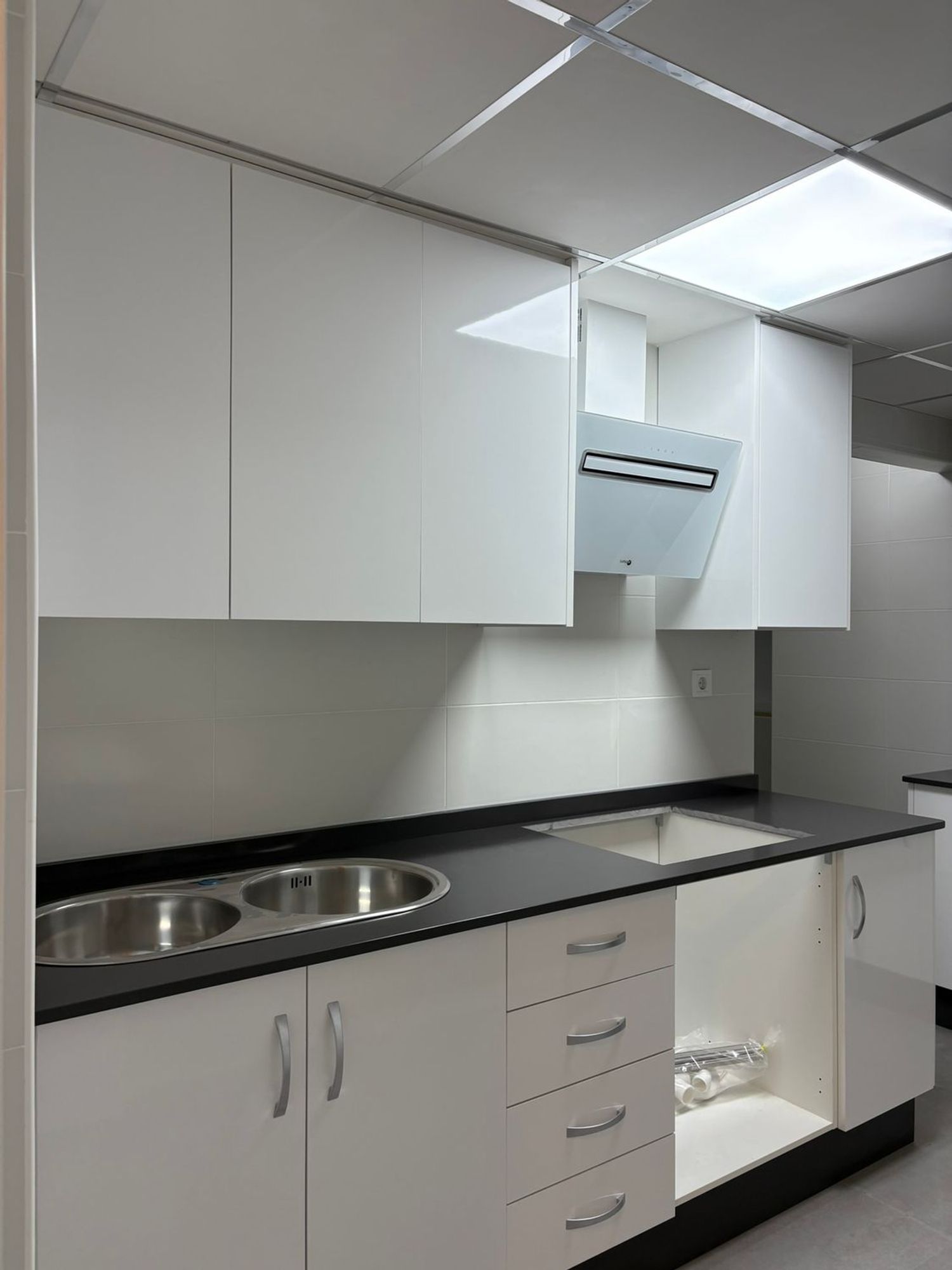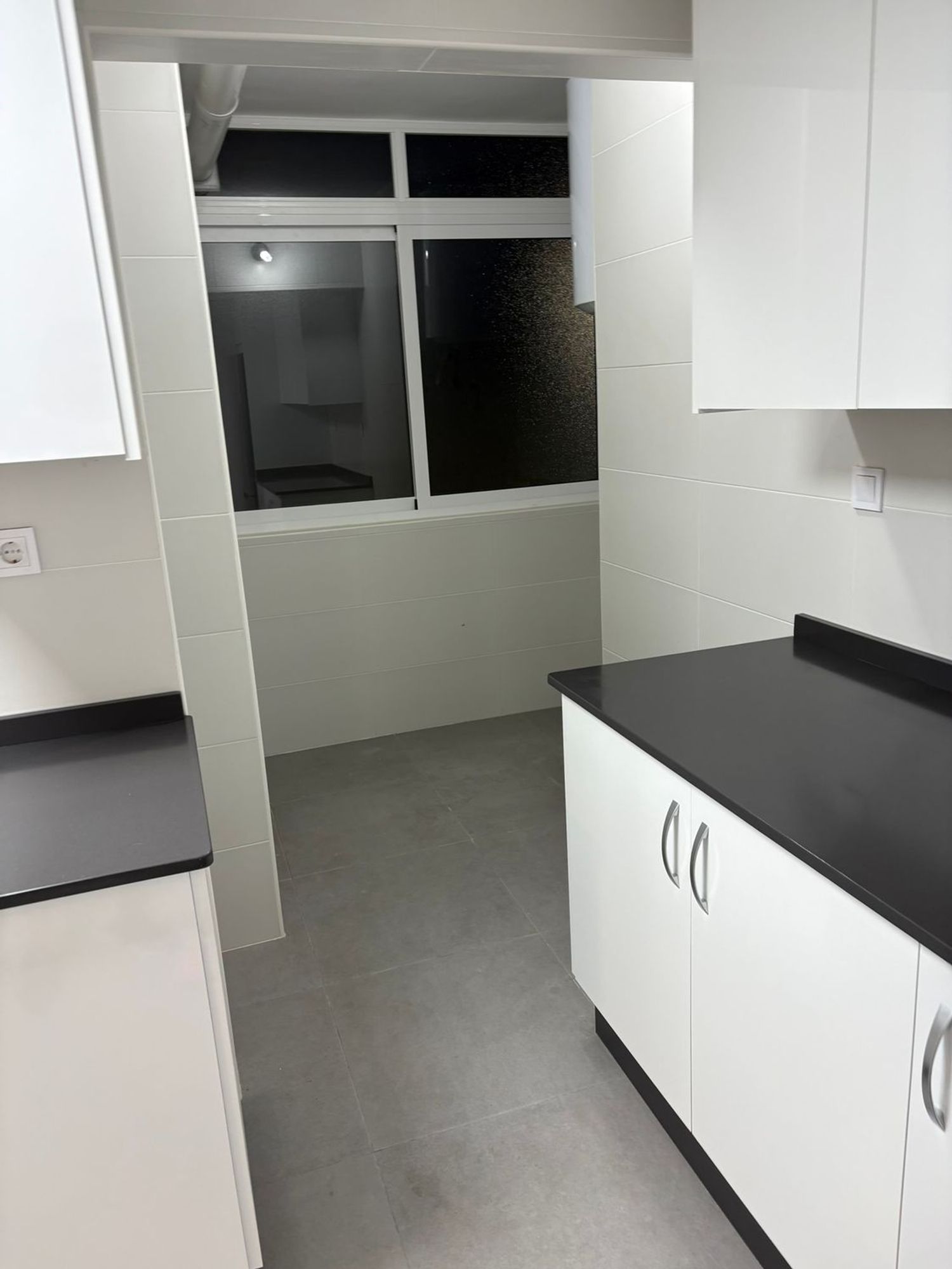 La cocina, totalmente nueva, destaca por su diseño actual con azulejos modernos, gran capacidad de almacenaje, encimera de Silestone y electrodomésticos nuevos, ideal para los amantes de la cocina funcional y estética.