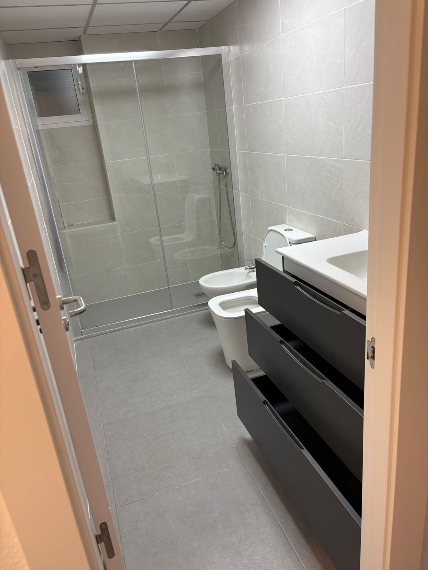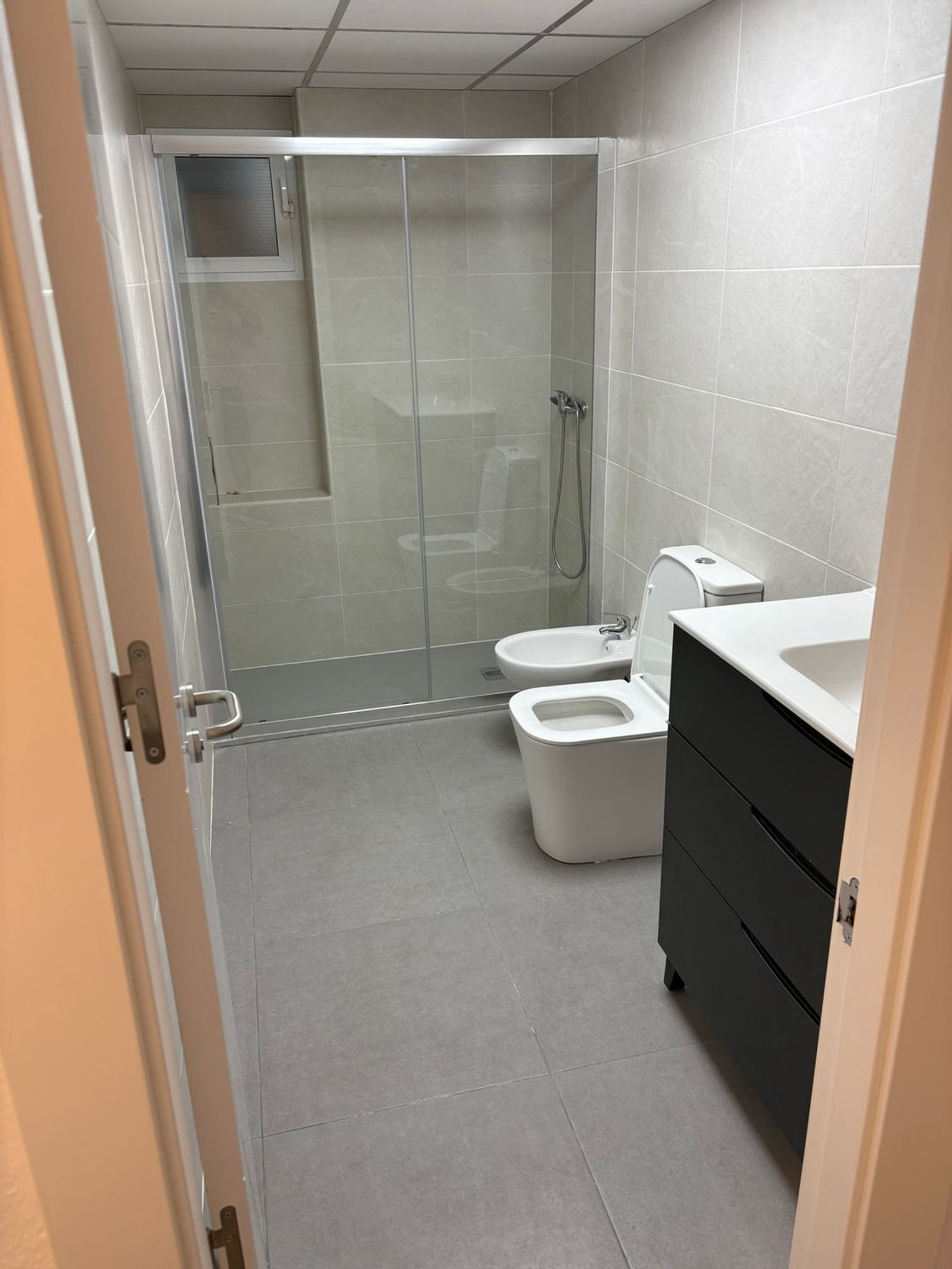 El baño principal ha sido completamente reformado con materiales contemporáneos y mampara de cristal, mientras que el aseo adicional aporta comodidad para toda la familia o invitados.