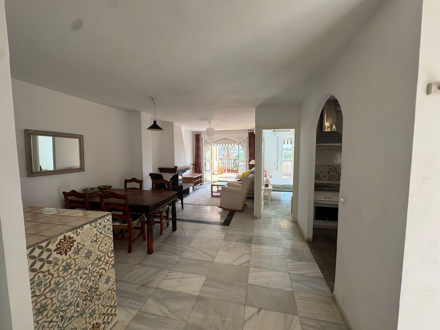 El apartamento, con una superficie construida de 65 m², se distribuye de forma funcional y luminosa. Dispone de dos dormitorios dobles, ambos con aire acondicionado y armarios empotrados. El dormitorio principal cuenta con baño en suite completamente alicatado recientemente, mientras que el segundo dormitorio, amplio y con acceso directo a la terraza, disfruta también de gran luminosidad y confort.