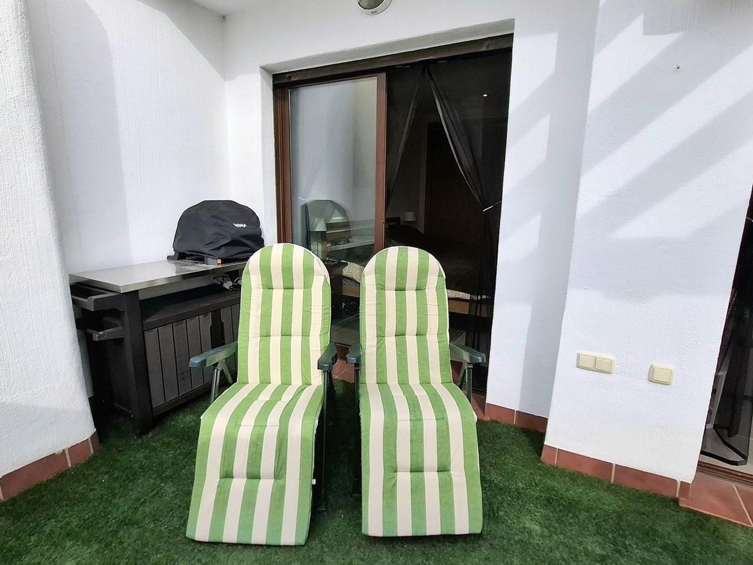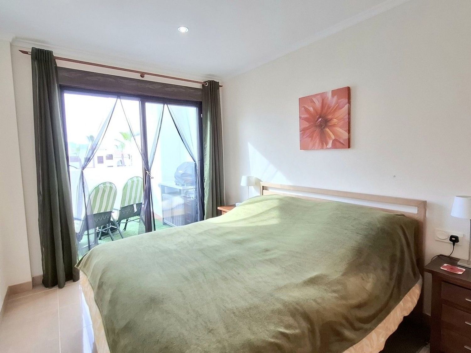 Tanto el salón como el dormitorio principal tienen acceso directo a una gran terraza privada, uno de los grandes atractivos de la propiedad. Este espacio exterior ofrece vistas a la piscina comunitaria, cuenta con un discreto espacio de almacenamiento y dispone de suficiente amplitud para crear una zona de comedor exterior y un área de descanso, ideal para disfrutar del sol y del clima durante todo el año.