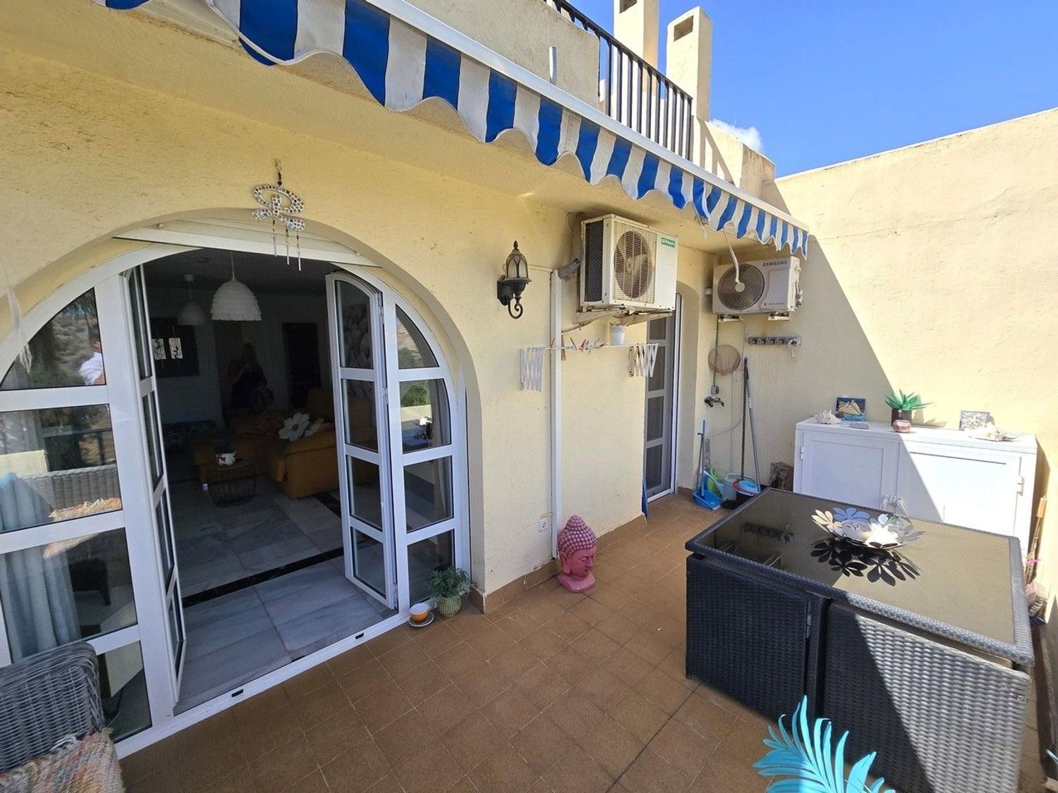 La urbanización destaca por sus impecables jardines comunitarios y su piscina, creando un entorno relajado y agradable, ideal tanto para residir durante todo el año como para disfrutar de estancias vacacionales. Además, la propiedad se encuentra a poca distancia a pie de tiendas, cafeterías, bares y restaurantes locales, así como con fácil acceso a la línea de autobús, lo que permite moverse cómodamente sin necesidad de coche.