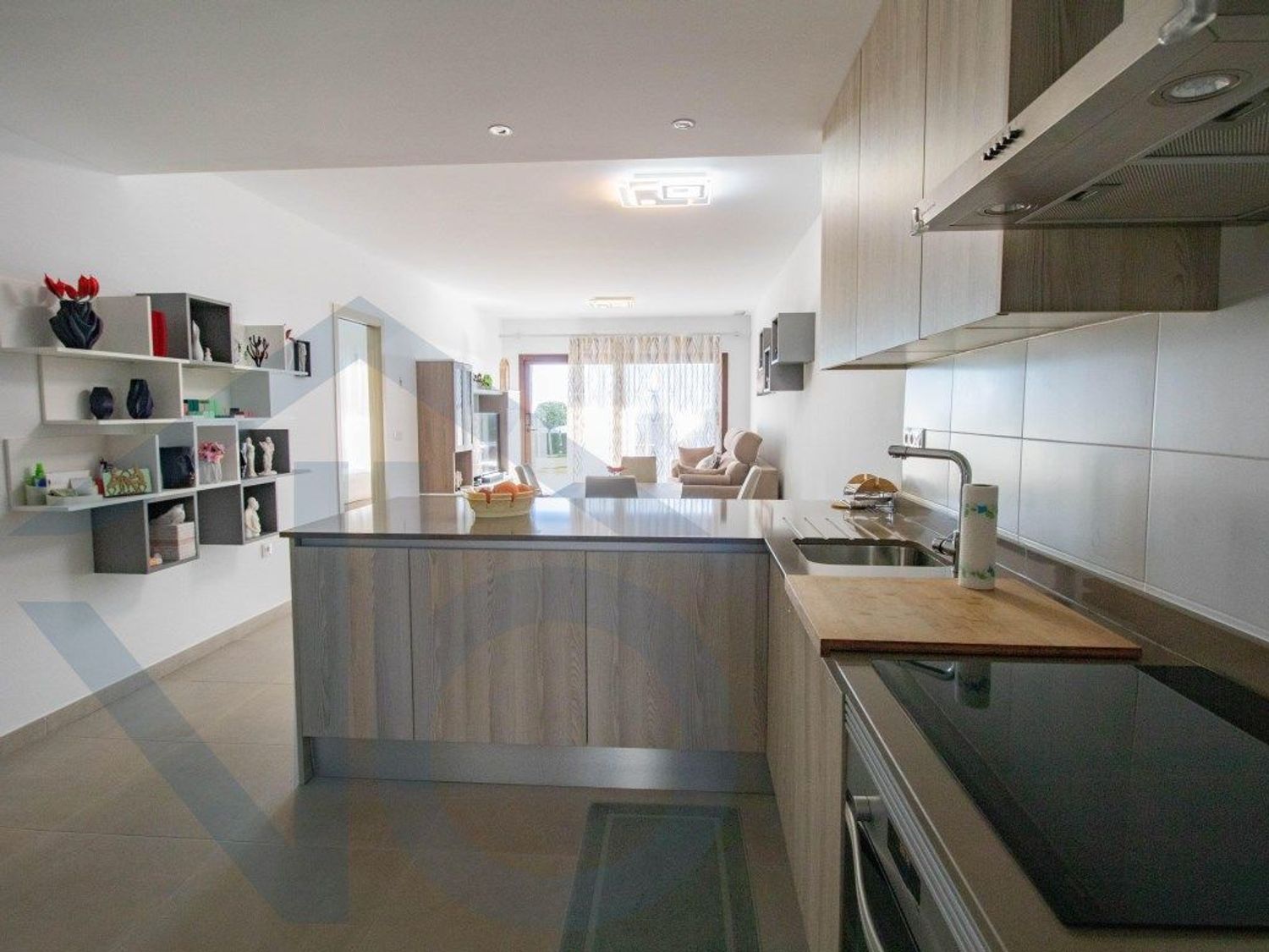 El interior se presenta elegante y funcional, con un salón-comedor de concepto abierto que conecta directamente con la cocina. Esta última está completamente equipada con electrodomésticos de primeras marcas y amueblada con mobiliario italiano de alta gama, aportando un estilo sofisticado y atemporal. Todo el conjunto ha sido diseñado para crear un espacio acogedor, práctico y visualmente armonioso.