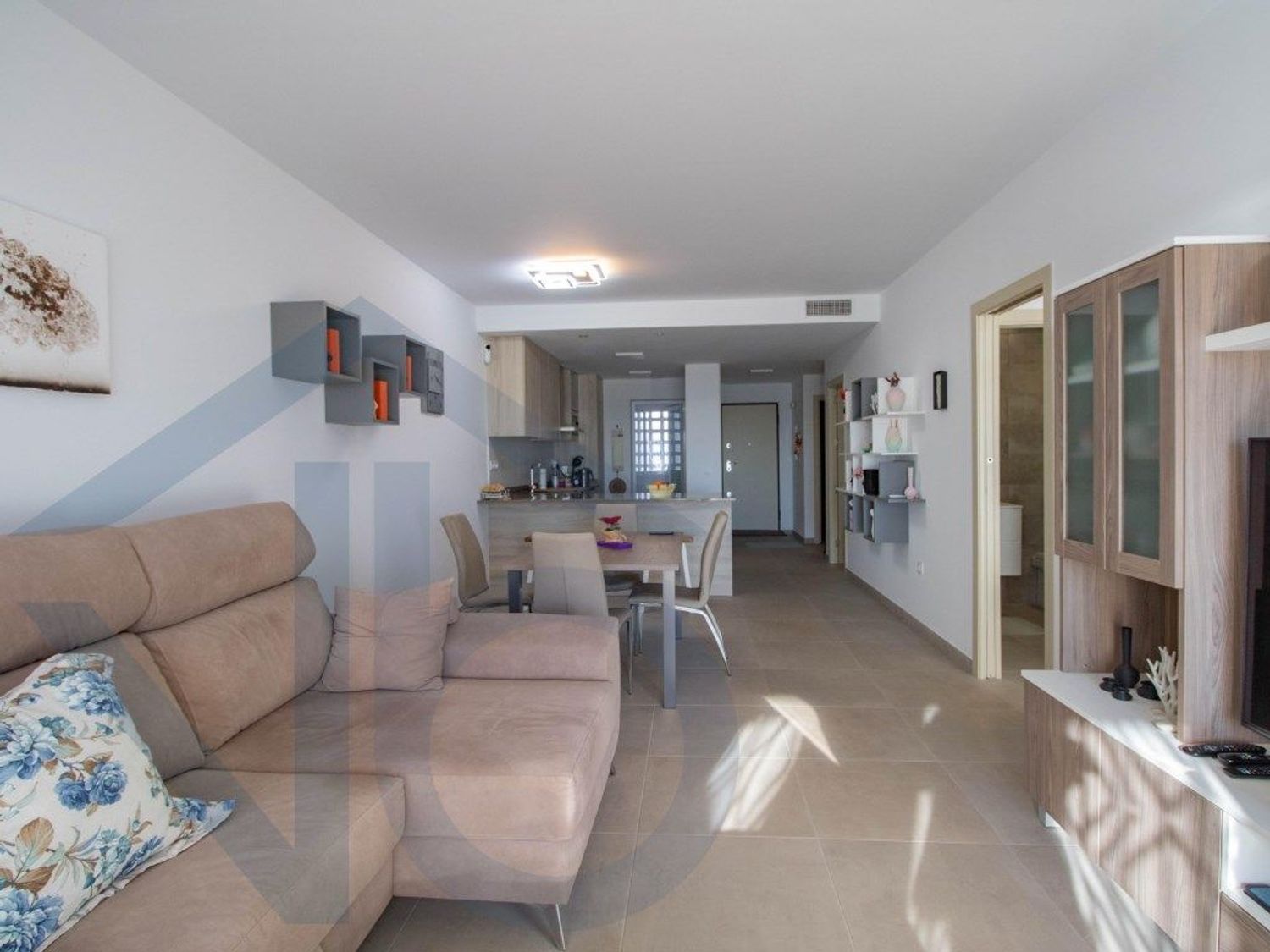 Este magnífico apartamento de dos dormitorios en planta baja representa una oportunidad excepcional para quienes buscan una vivienda moderna, eficiente y confortable en un entorno privilegiado junto al mar. De construcción reciente, la propiedad destaca por su diseño de líneas contemporáneas, su cuidada distribución y una excelente luminosidad natural gracias a sus amplios ventanales.