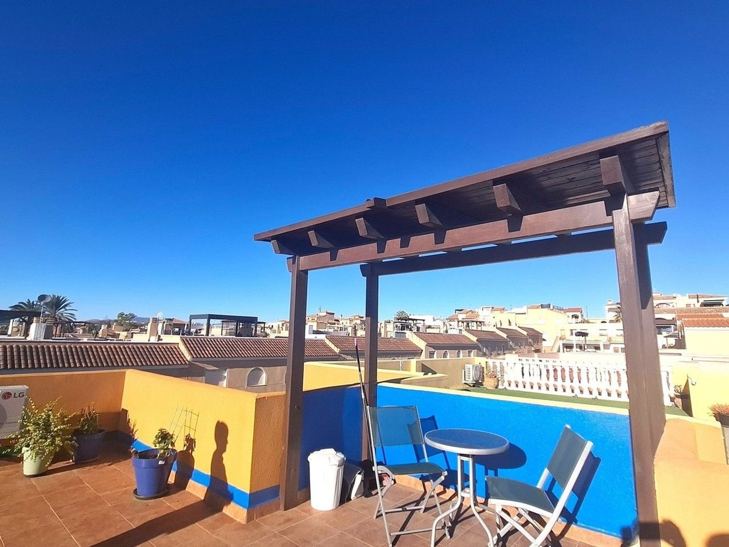 Uno de los grandes atractivos de esta vivienda es su condición de ático, ya que dispone de una amplia terraza privada en la azotea con preciosas vistas al mar. Este magnífico espacio exterior está equipado con una pérgola que proporciona sombra durante las horas centrales del día, y ofrece espacio suficiente para zona de comedor, tumbonas y barbacoa. Un entorno perfecto para relajarse, disfrutar del clima mediterráneo o compartir momentos con amigos y familiares.