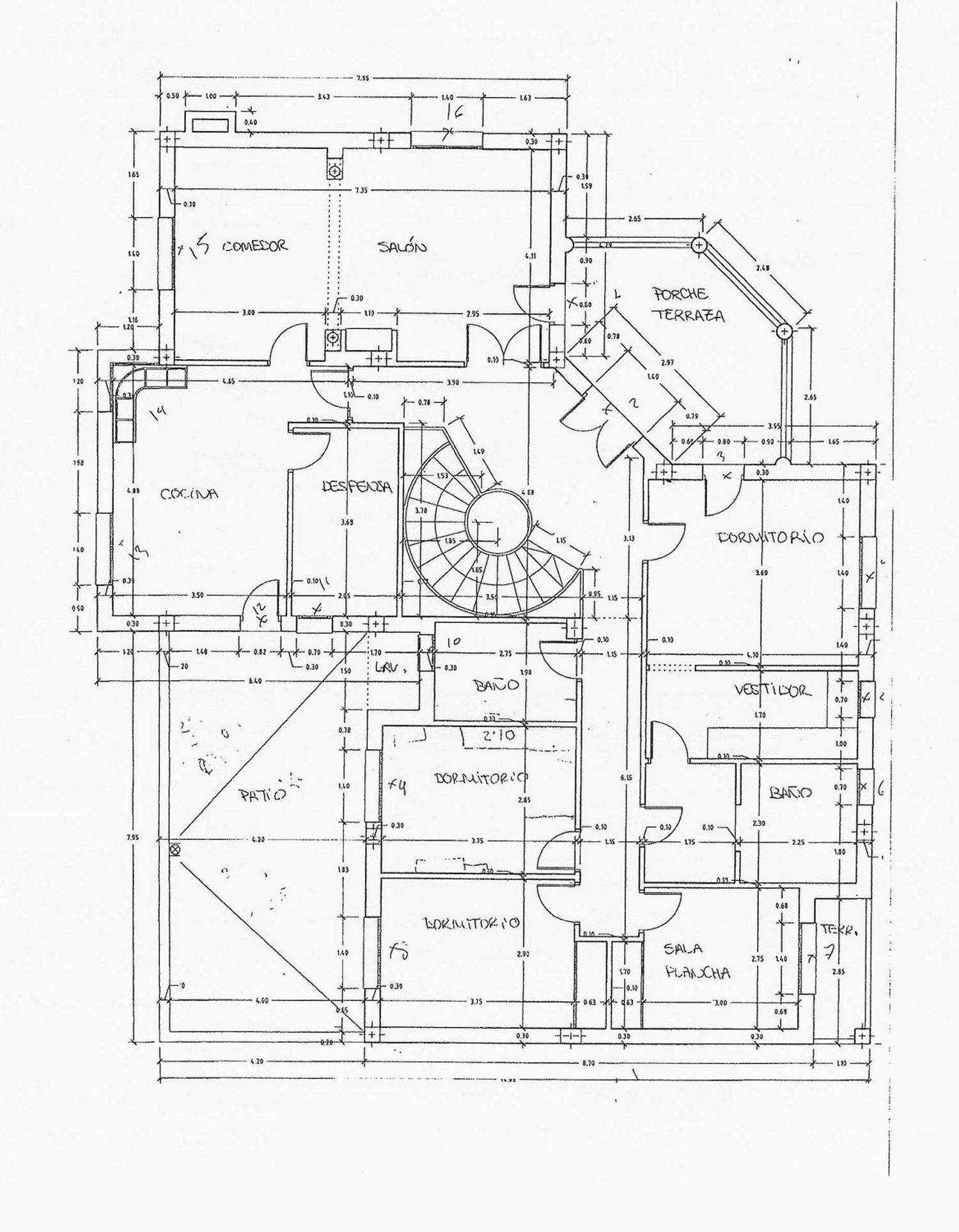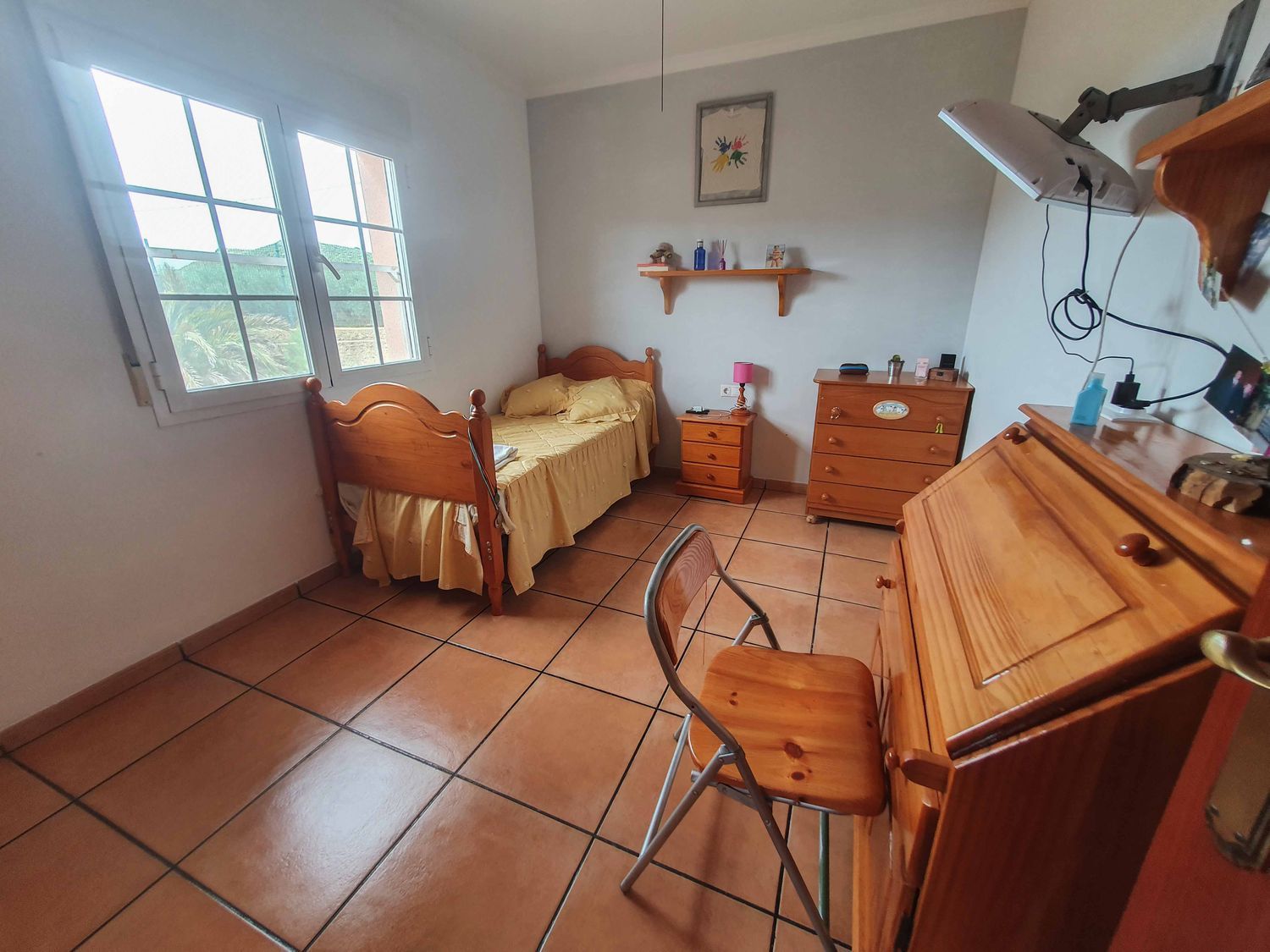 La vivienda cuenta además con tres dormitorios dobles adicionales, todos con armarios empotrados, uno de ellos actualmente utilizado como despacho y con acceso a un balcón. Completa la planta un baño completo con ducha.