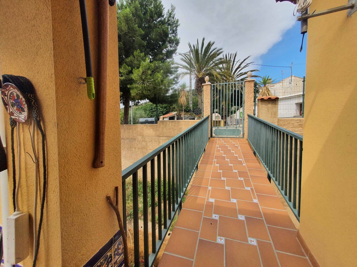 La propiedad se asienta sobre una amplia parcela de 1.515 m², completamente vallada, con árboles maduros y espacio más que suficiente para diseñar un espectacular jardín y construir una piscina privada. El chalet cuenta con dos accesos independientes, uno desde la carretera principal que conduce al jardín delantero y a la entrada principal, y otro acceso posterior mediante una pasarela que conecta directamente con el patio y la cocina de la vivienda, aportando una gran comodidad en el día a día.