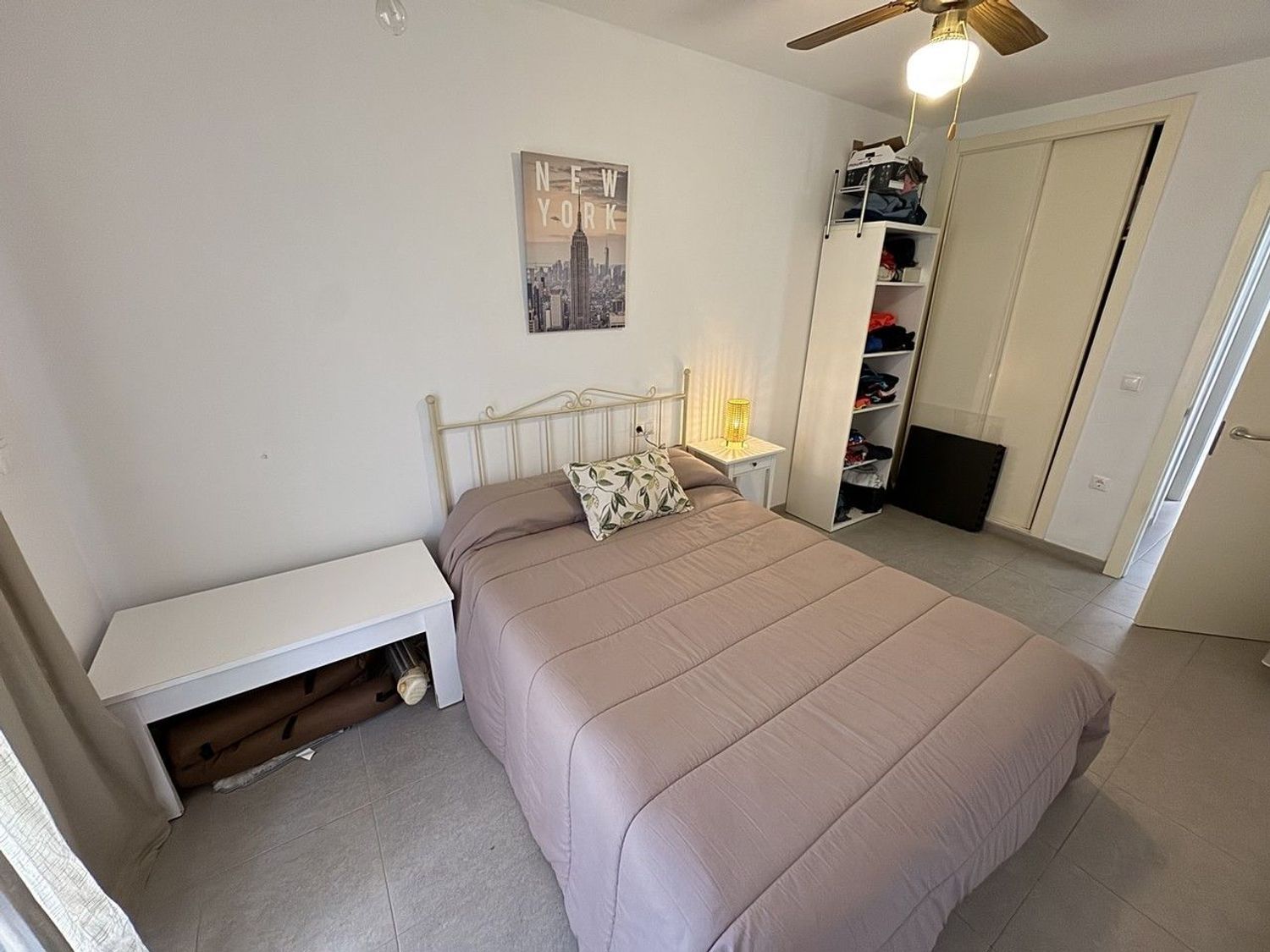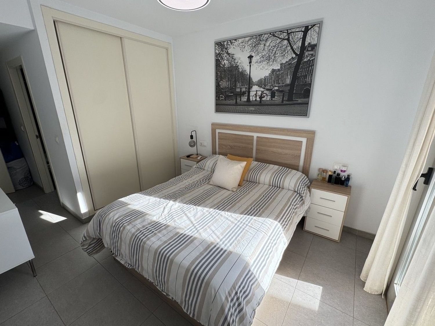 La villa dispone de un baño completo con ducha para invitados, un amplio dormitorio secundario con armarios empotrados y puertas de acceso a la terraza, y un dormitorio principal muy bien proporcionado. Este último cuenta con armarios empotrados, puertas de patio y baño en suite, ofreciendo un espacio cómodo y privado.