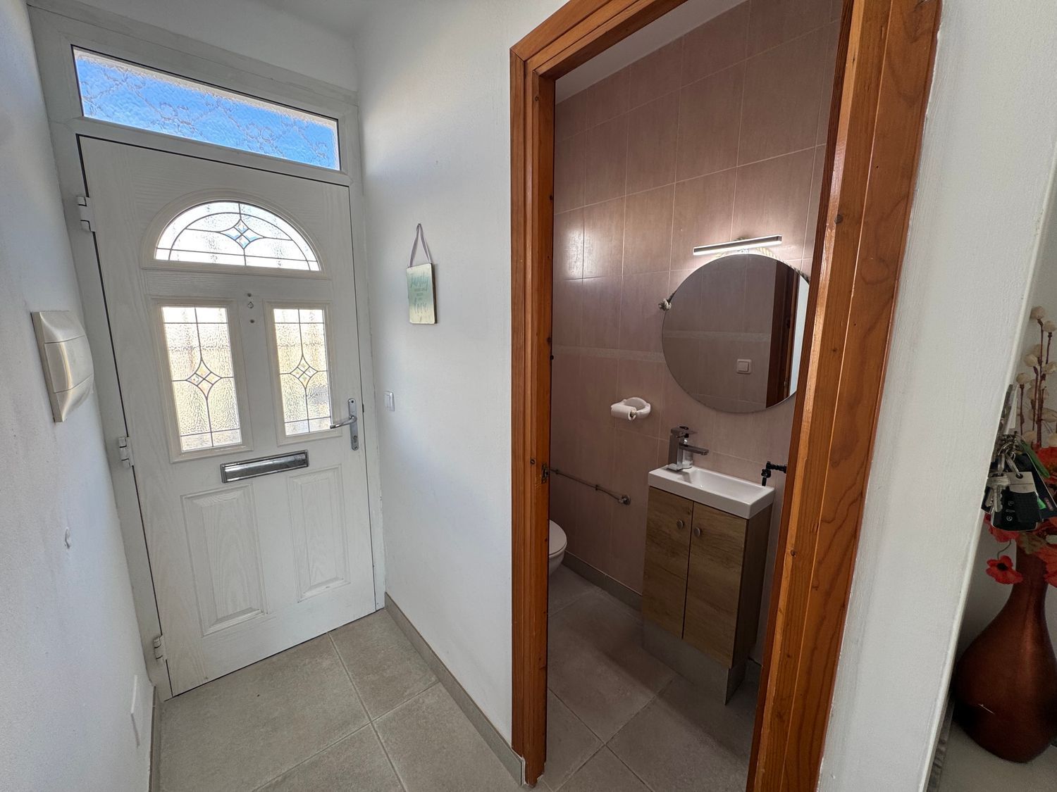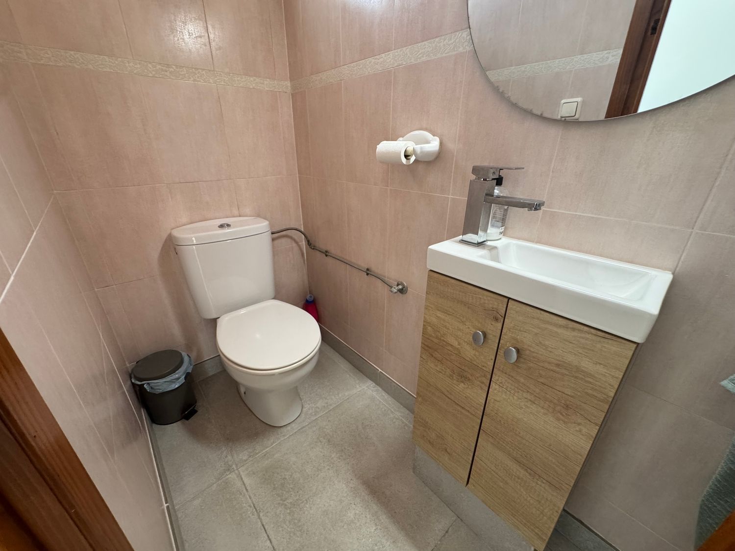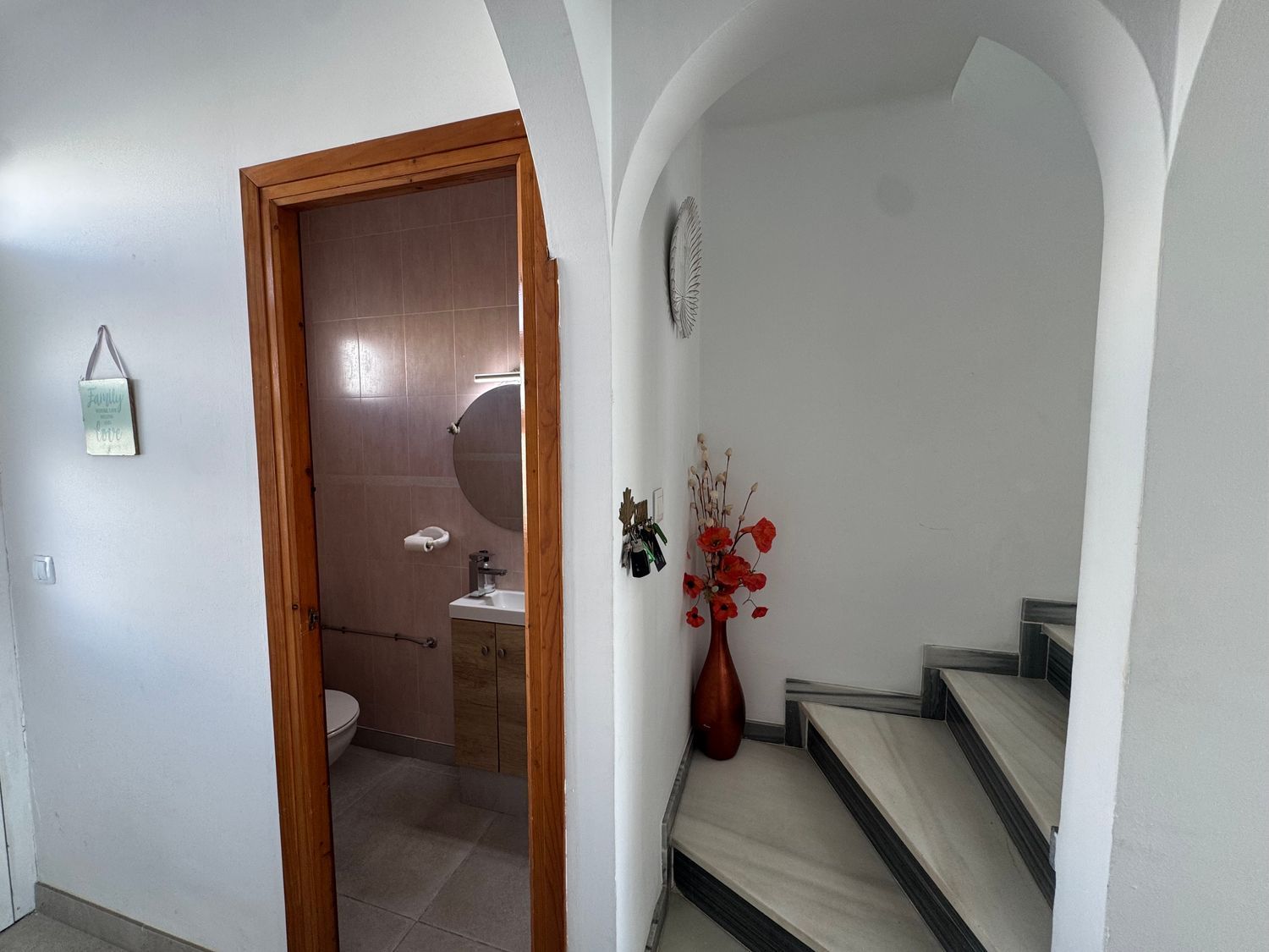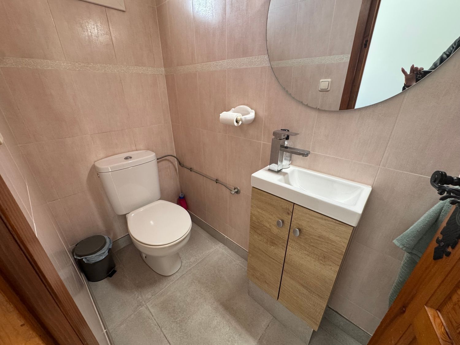 En esta misma planta se encuentra un aseo de cortesía, equipado con inodoro y lavabo, así como un práctico trastero ubicado bajo la escalera, perfecto para almacenamiento adicional y para mantener la vivienda ordenada.
