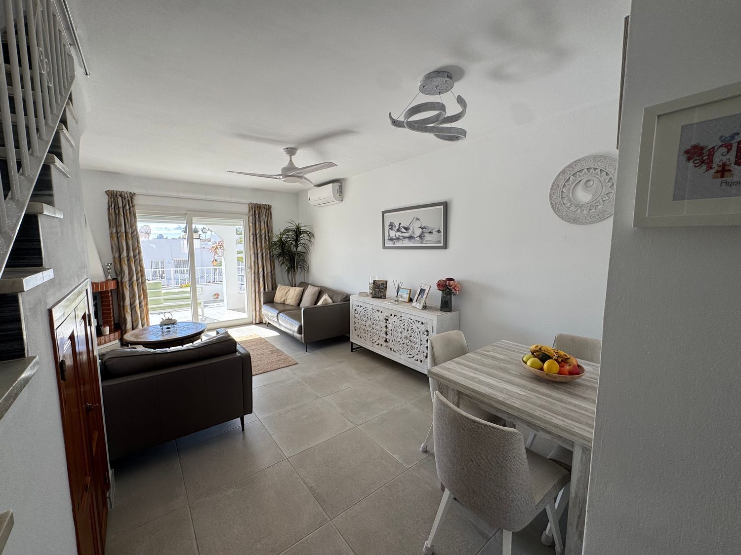 Presentamos esta magnífica propiedad tipo dúplex situada en el cuidado y consolidado complejo residencial Las Brisas I, una comunidad conocida por su excelente mantenimiento, tranquilidad y atractivas vistas tanto al mar como a las montañas circundantes. El complejo ofrece a sus residentes una gran piscina comunitaria rodeada de zonas ajardinadas, así como aparcamiento privado, lo que garantiza comodidad y calidad de vida.