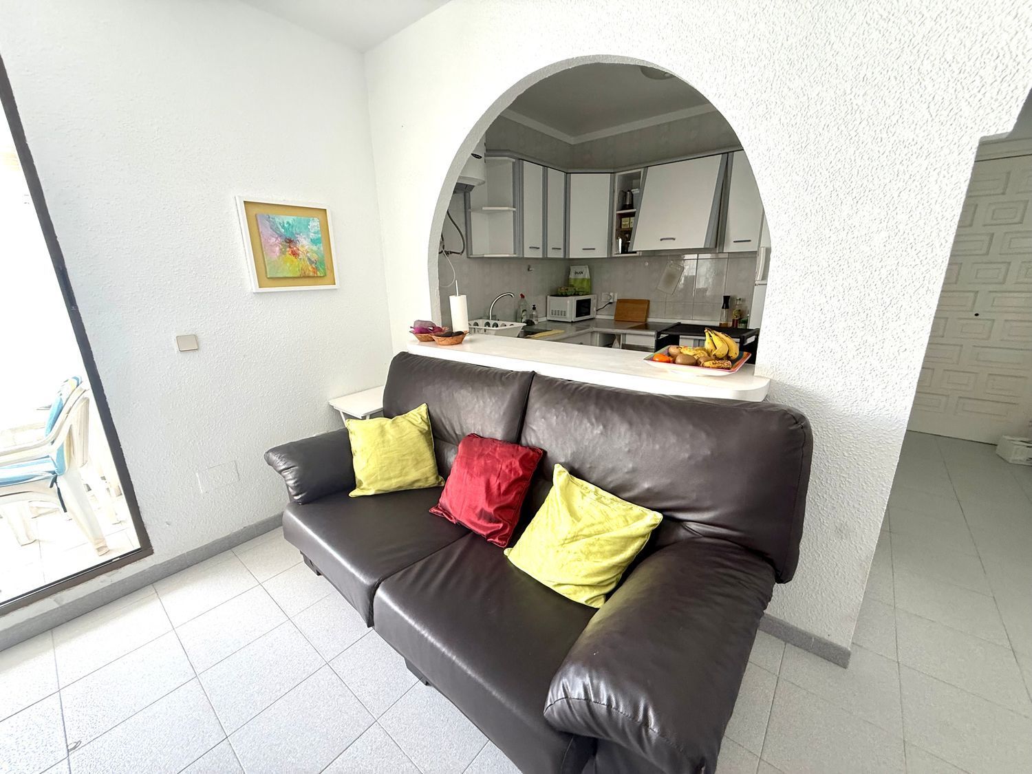 El corazón de la vivienda es su salón-comedor, un espacio luminoso y acogedor que conecta directamente con la terraza principal. Desde aquí se disfrutan vistas frontales al mar, convirtiéndose en el lugar perfecto para relajarse, desayunar o simplemente contemplar inolvidables amaneceres frente al Mediterráneo.