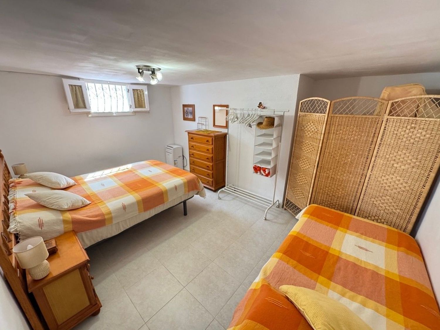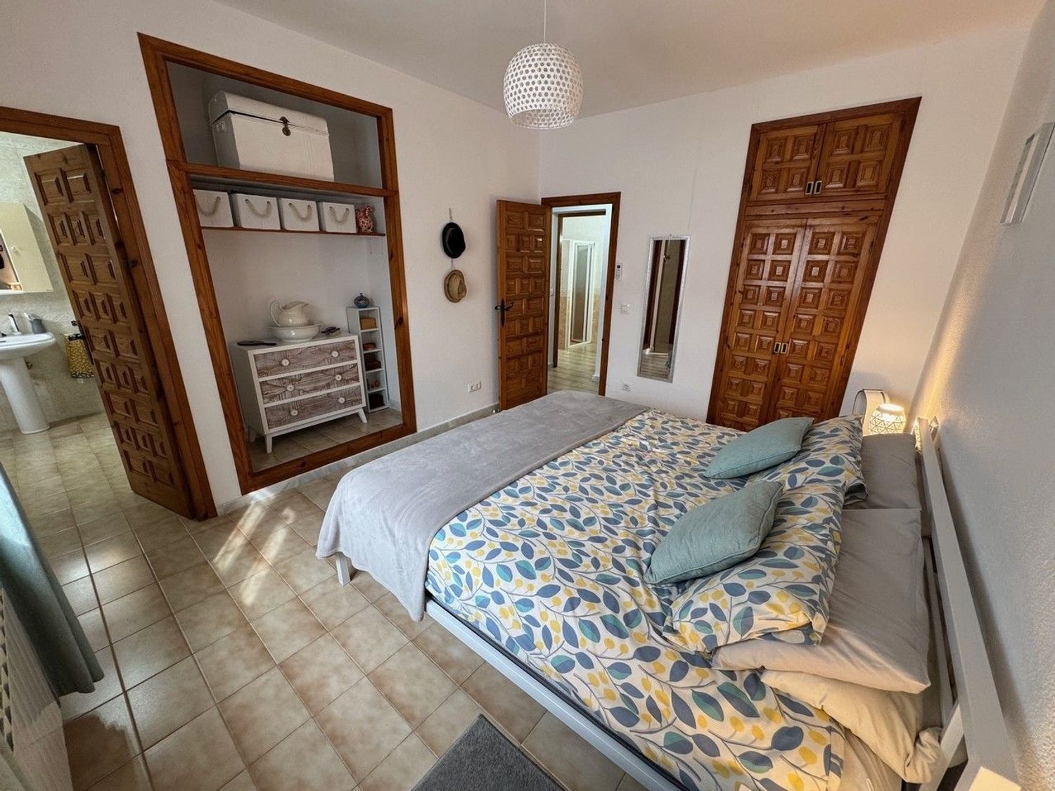 El primero es un amplio dormitorio doble con armarios empotrados.