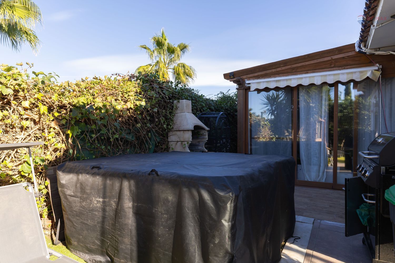 El jardín privado orientado al sur es uno de los grandes atractivos de la propiedad. Concebido como un auténtico oasis, cuenta con jacuzzi, zona de barbacoa y un porche, actualmente habilitado como comedor exterior, perfecto para disfrutar del clima mediterráneo y de reuniones al aire libre durante todo el año.