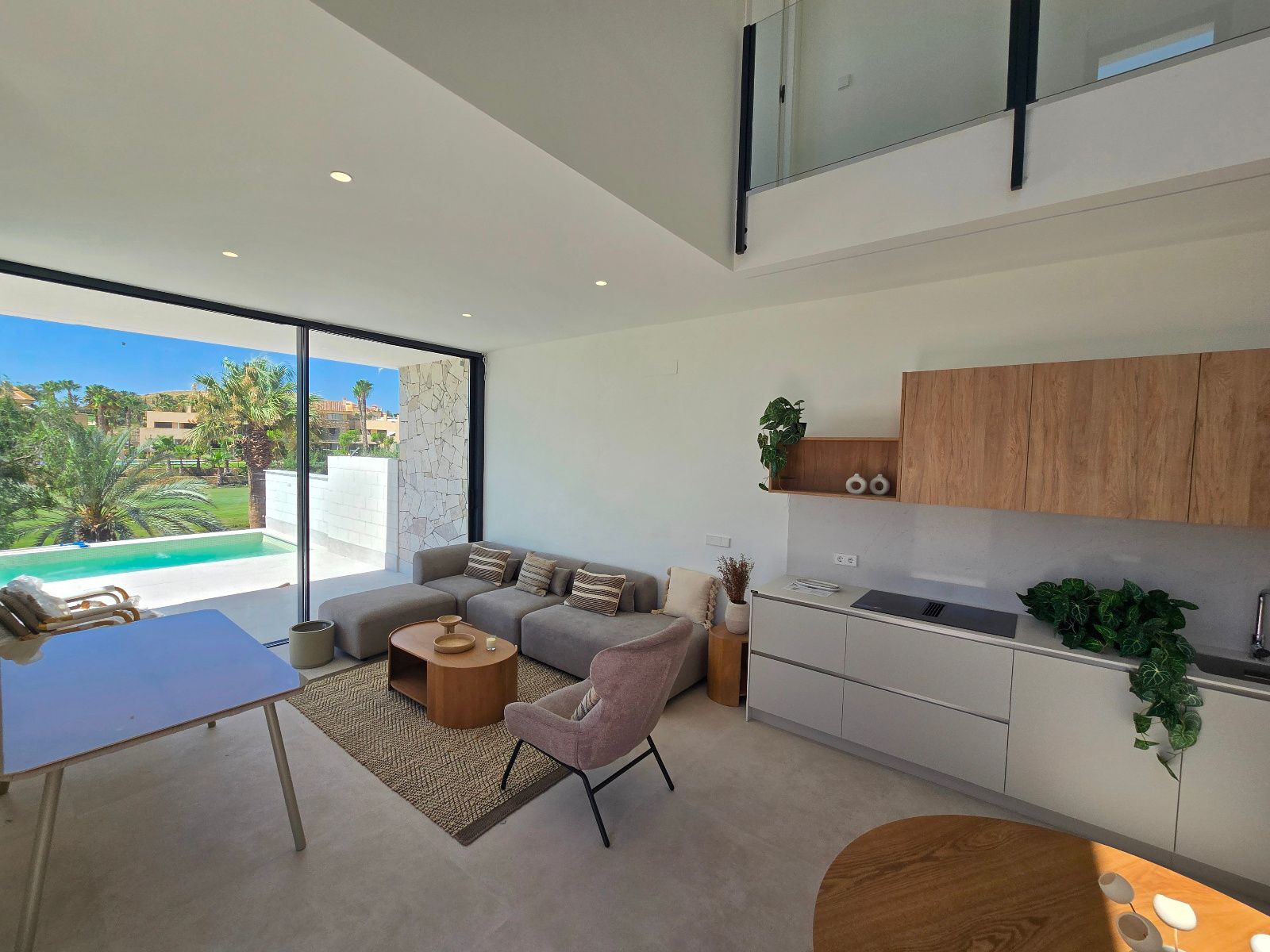 El dúplex dispone de dos baños completos, diseñados con un estilo moderno y funcional para ofrecer el máximo confort. Además, la propiedad permite el acceso a las zonas comunes del complejo, incluyendo el prestigioso campo de golf, un valor añadido para los amantes de este deporte.