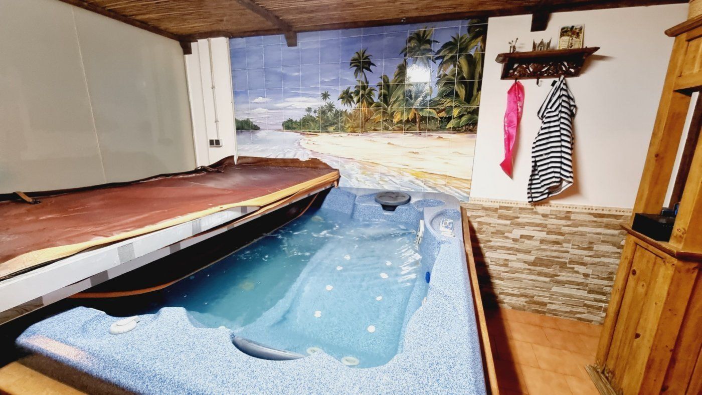 Uno de los espacios más destacados de esta propiedad es su sótano totalmente acondicionado, un verdadero espacio de ocio y descanso. Cuenta con una chimenea de piedra, horno de leña, cocina equipada, zona de jacuzzi, salón y un baño completo, ideal para reuniones familiares o momentos de relax.