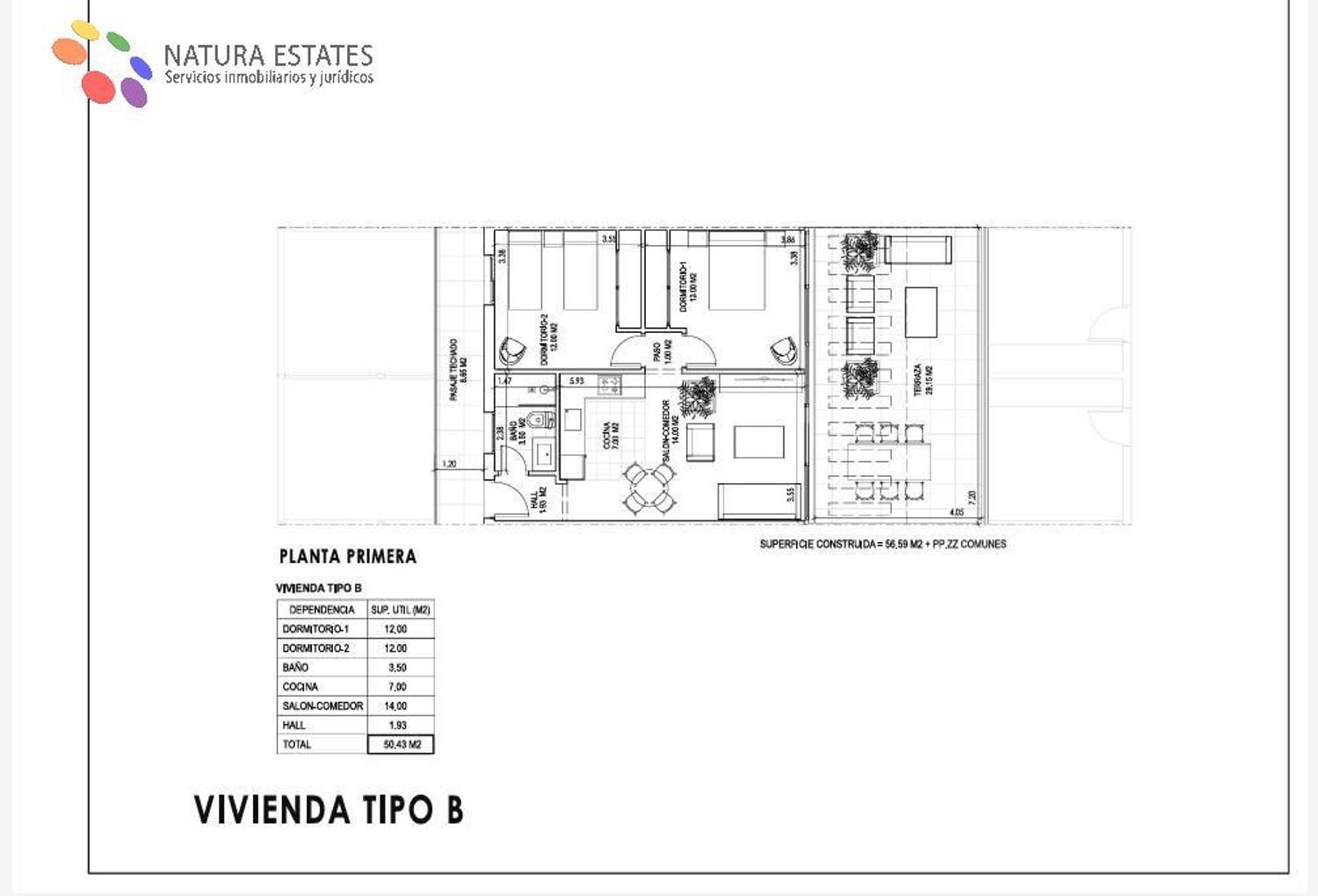 La vivienda cuenta con una superficie construida de 83 m² y 65 m² útiles, ofreciendo una distribución cómoda y funcional. Dispone de dos dormitorios bien proporcionados, ideales tanto para uso familiar como para recibir invitados. El baño es completo y práctico, adaptado a las necesidades del día a día.